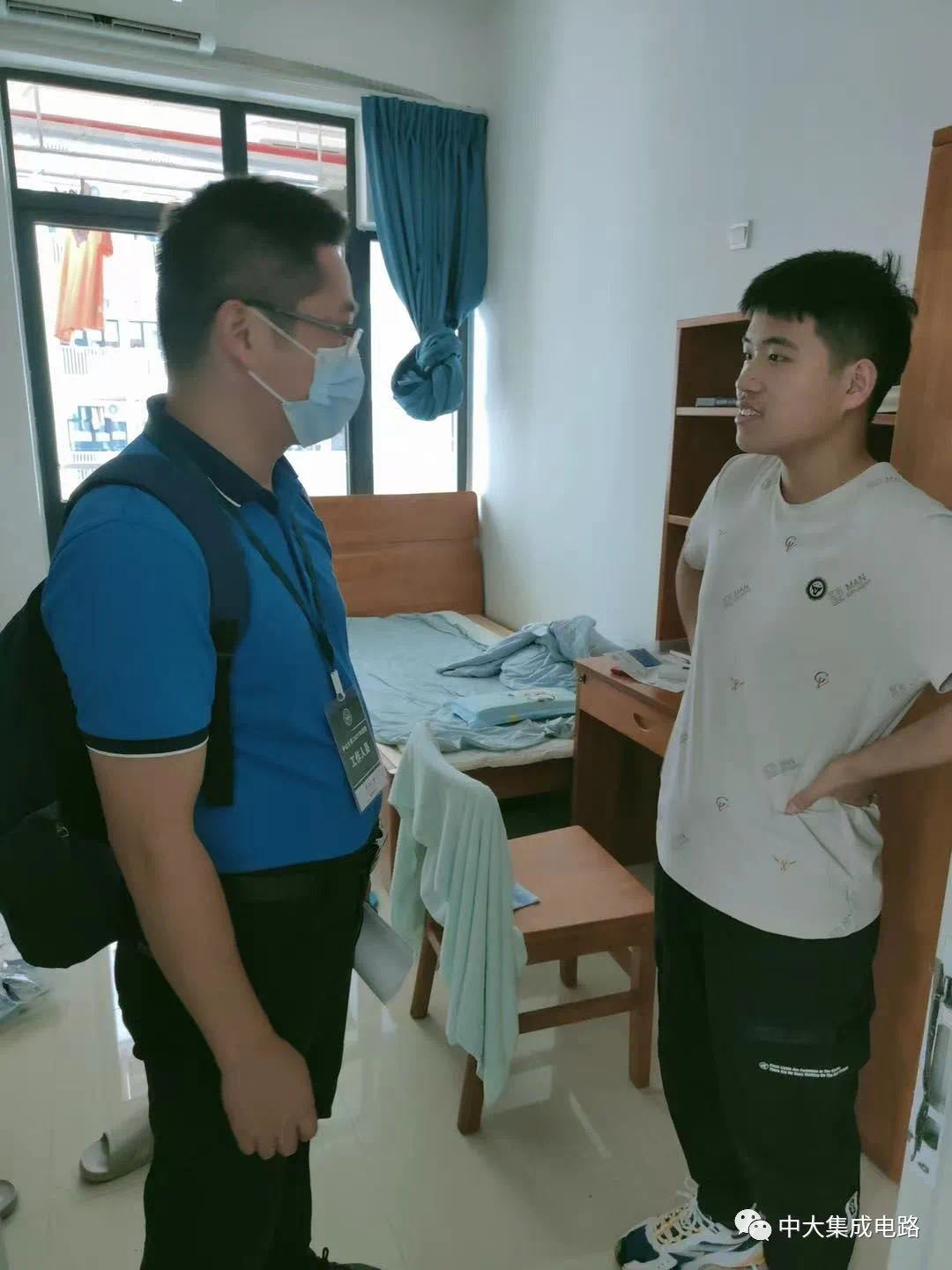 9月2日傍晚,张书记、杨主任和辅导员何老师前往学生宿舍,亲切地询问了同学们的生活情况,并与新同学们进行亲切交谈,鼓励同学们努力学习、不忘初心、团结友爱、做人生的掌舵者,最后重点提醒同学们注意疫情期间的自我防护和校园安全问题,让同学们感受到了集成电路人的温暖。
