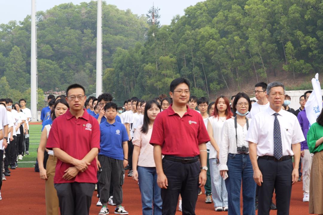 迎着晨曦,深圳校区校庆日升旗仪式在东区田径场举行,由邰忠智副校长主礼,管委会副主任陈东主持。学院直属党支部书记张尚武、副院长徐建明、副书记李锦华、辅导员何琛以及学生代表一起,共同见证这一庄严时刻。