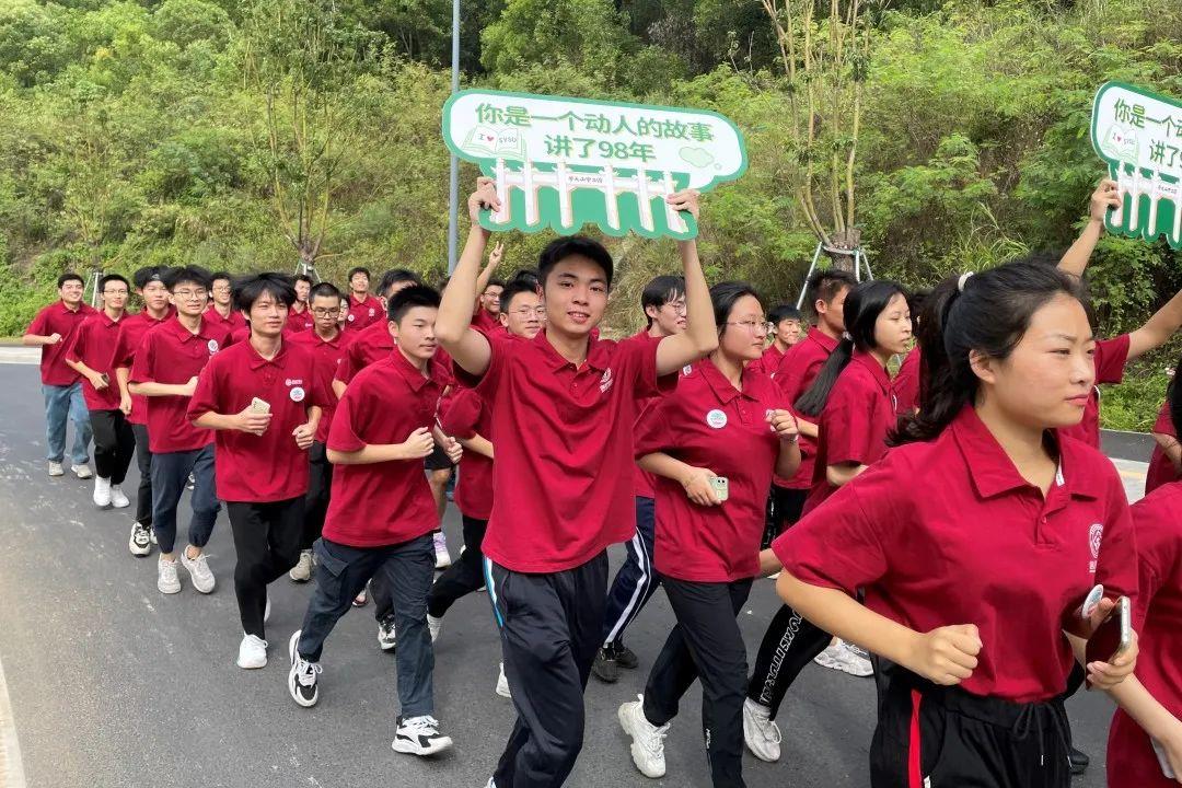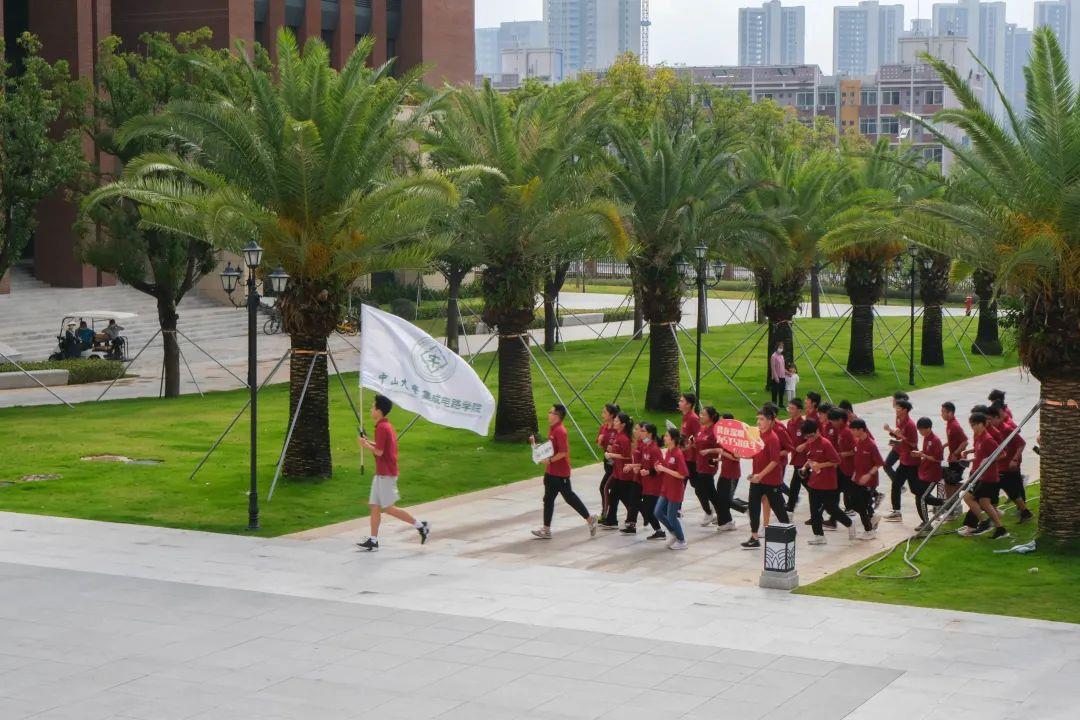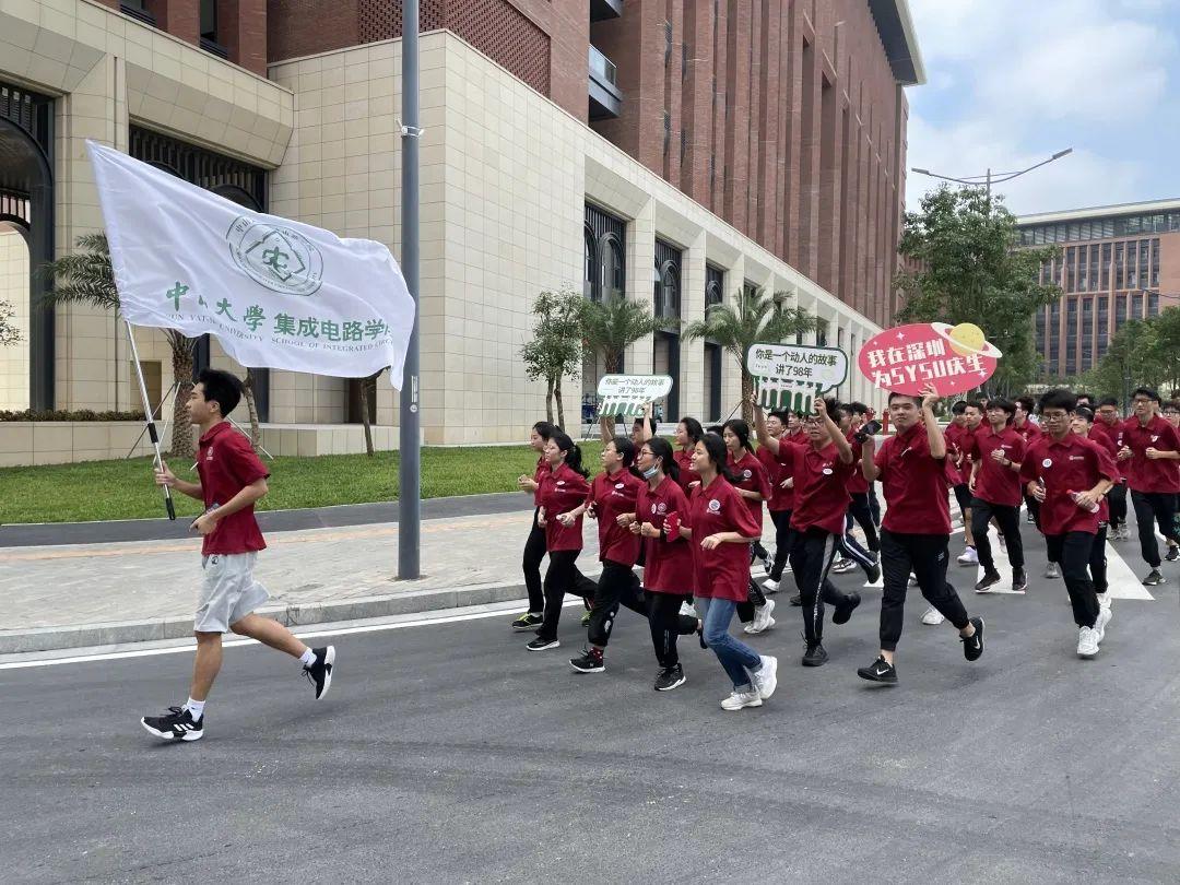 校庆仪式结束后,学院师生来到逸仙楼前,在喜迎学校98周年生日之际,一起参加深圳校区校庆环校跑活动。
