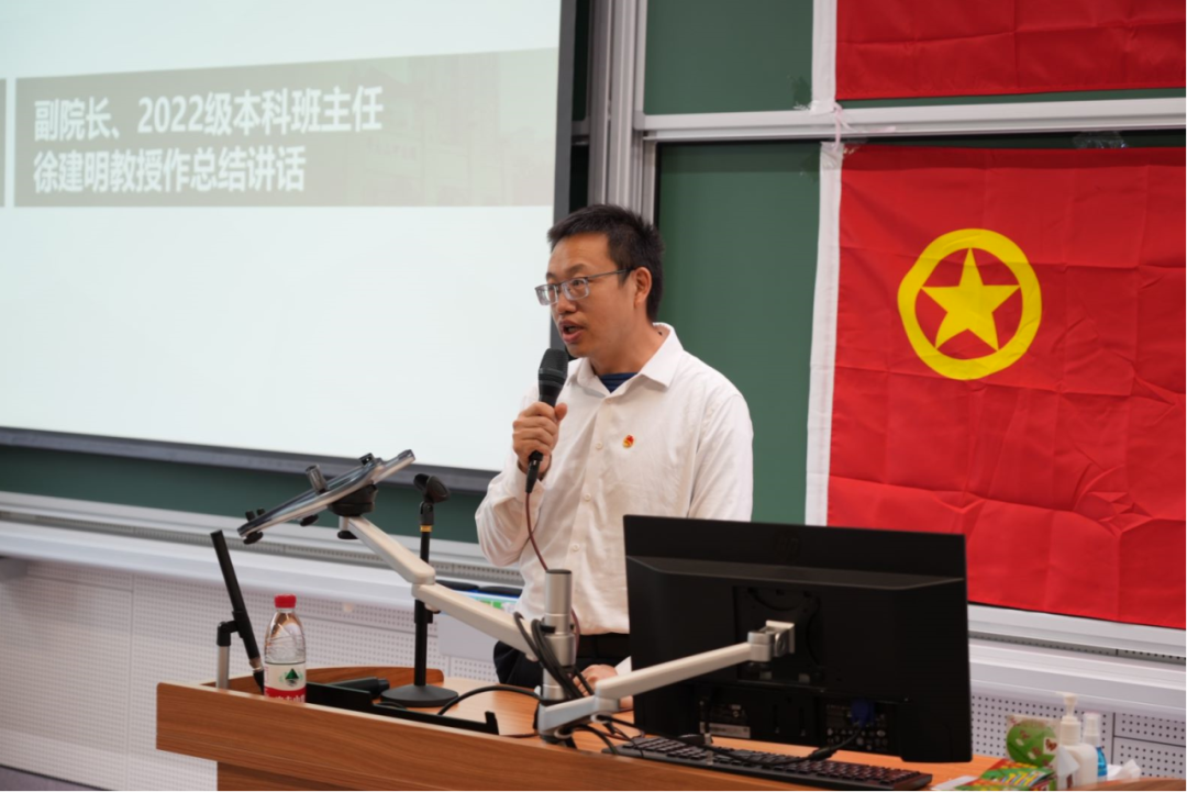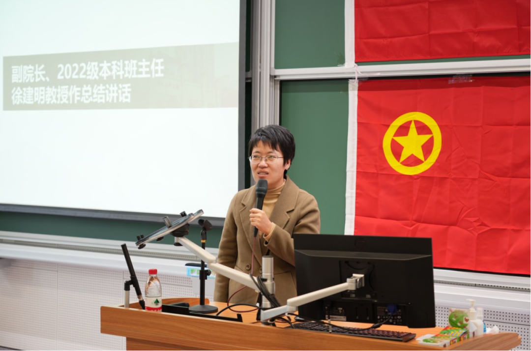 学院副院长、2022级本科班主任徐建明教授作总结讲话。徐院长充分肯定了上一届团学干部所取得的工作成果,同时也对此次参与竞选的候选人工作能力给予充分认可。徐院长希望大家不断提高自己,在完成好学业任务的同时积极参与团学工作,在实践中锻炼自我、收获进步,努力担负更大的责任,为国家和民族做出贡献。