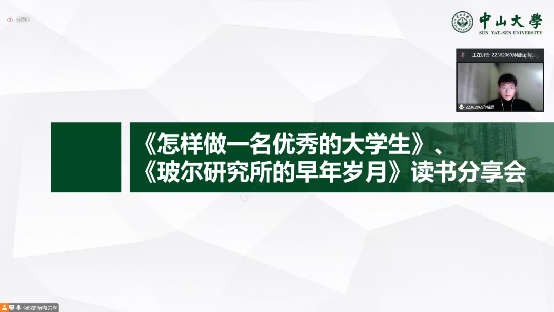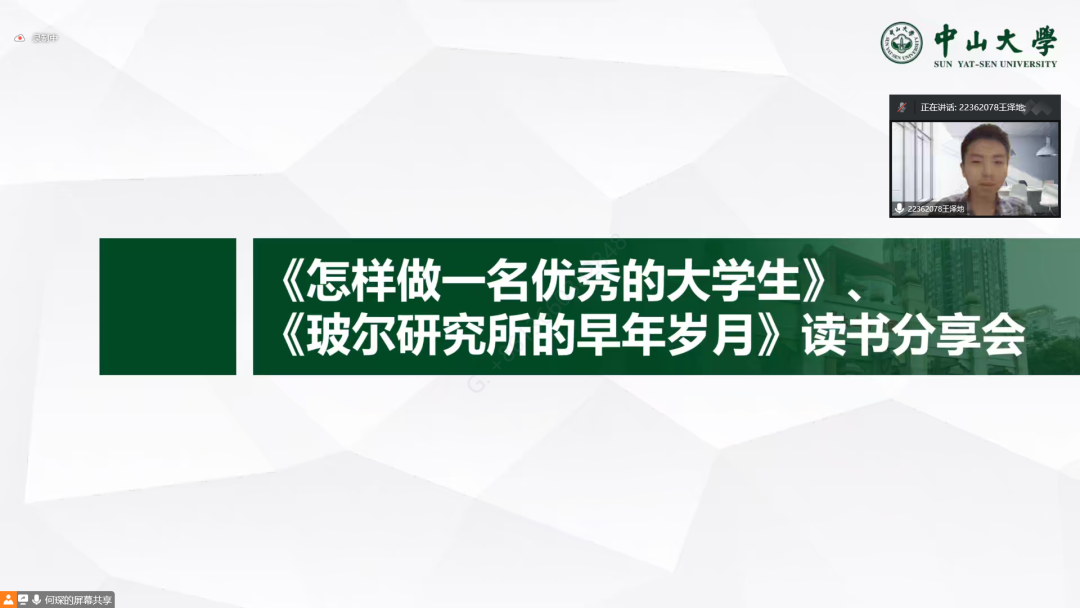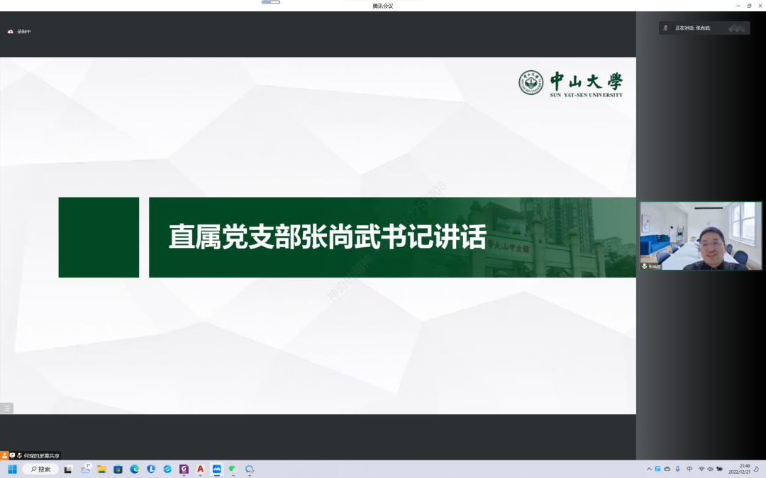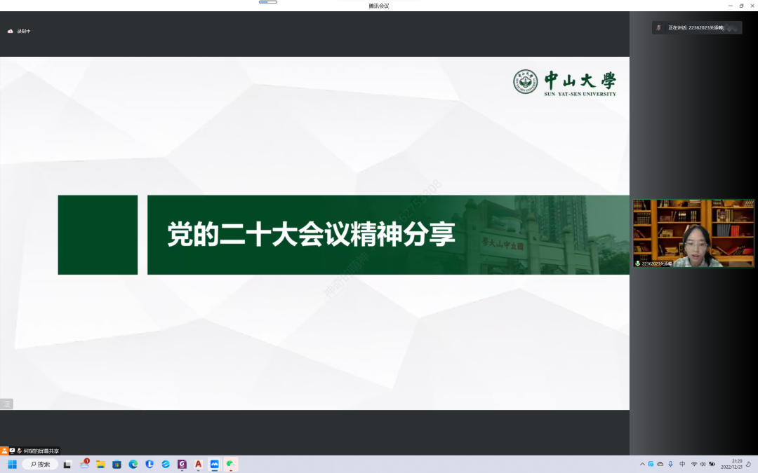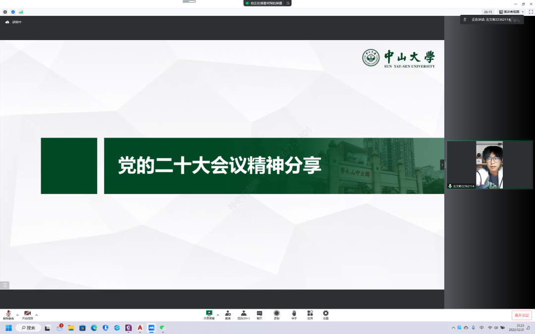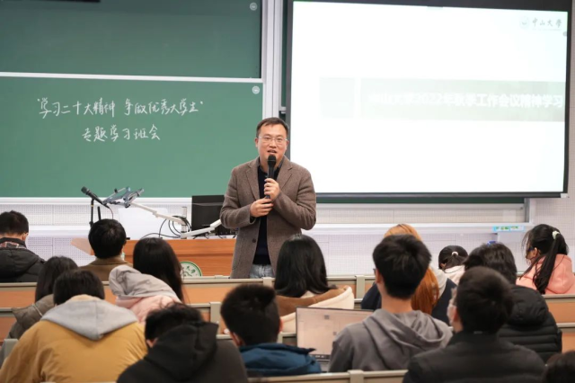 首先李锦华副书记带领同学们学习中山大学2022年秋季工作会议精神,重点学习了高松校长的大会主报告以及陈春声书记大会总结报告精神。