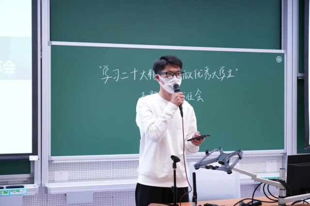 随后,学生代表依次上台发表自己对党的二十大精神的思想感悟,同学们表示青年一代要勤学笃行、担当大任,要怀抱梦想又脚踏实地,敢想敢为又善作善成,坚定不移跟党走,为打造中国“芯”贡献自己的力量。