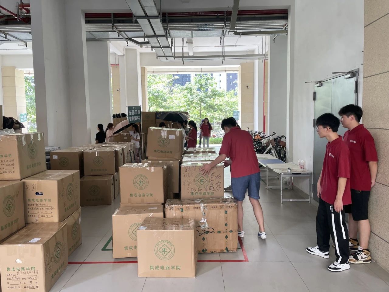 当日上午,2023级本科生平安抵达深圳校区。在指定的行李存放区,学院学长学姐志愿者们热情地帮助同学们搬运行李并指引同学们完成入住手续。