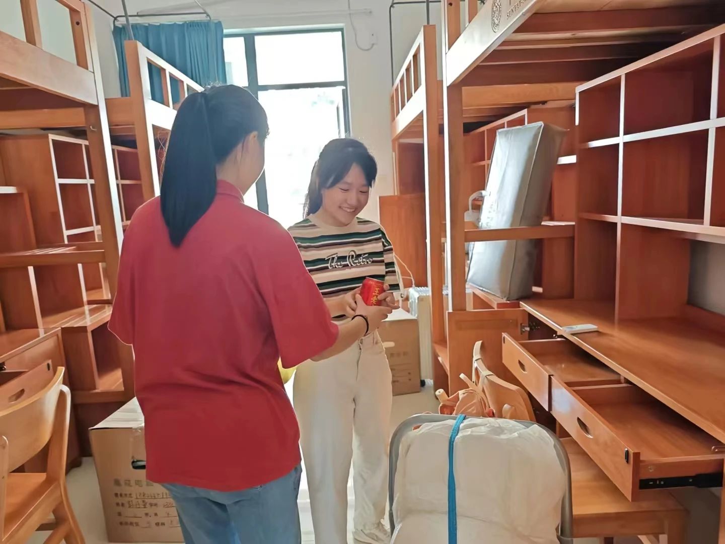 学院为搬迁学生派发解暑饮料
