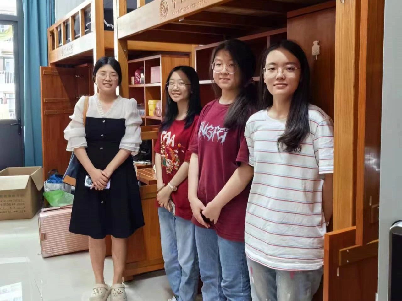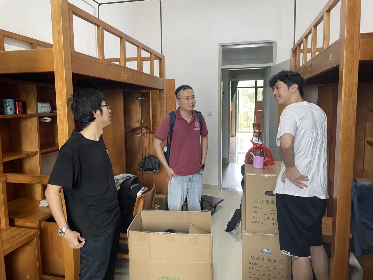 搬迁过程中,学院直属党支部副书记李锦华,2023级本科生班主任冯浪助理教授、毛文东助理教授、李莎莎助理教授,辅导员何琛分组走访了2023级学生宿舍,亲切询问同学们的住宿情况和生活需求,为同学们带去学院的温暖与关爱。
