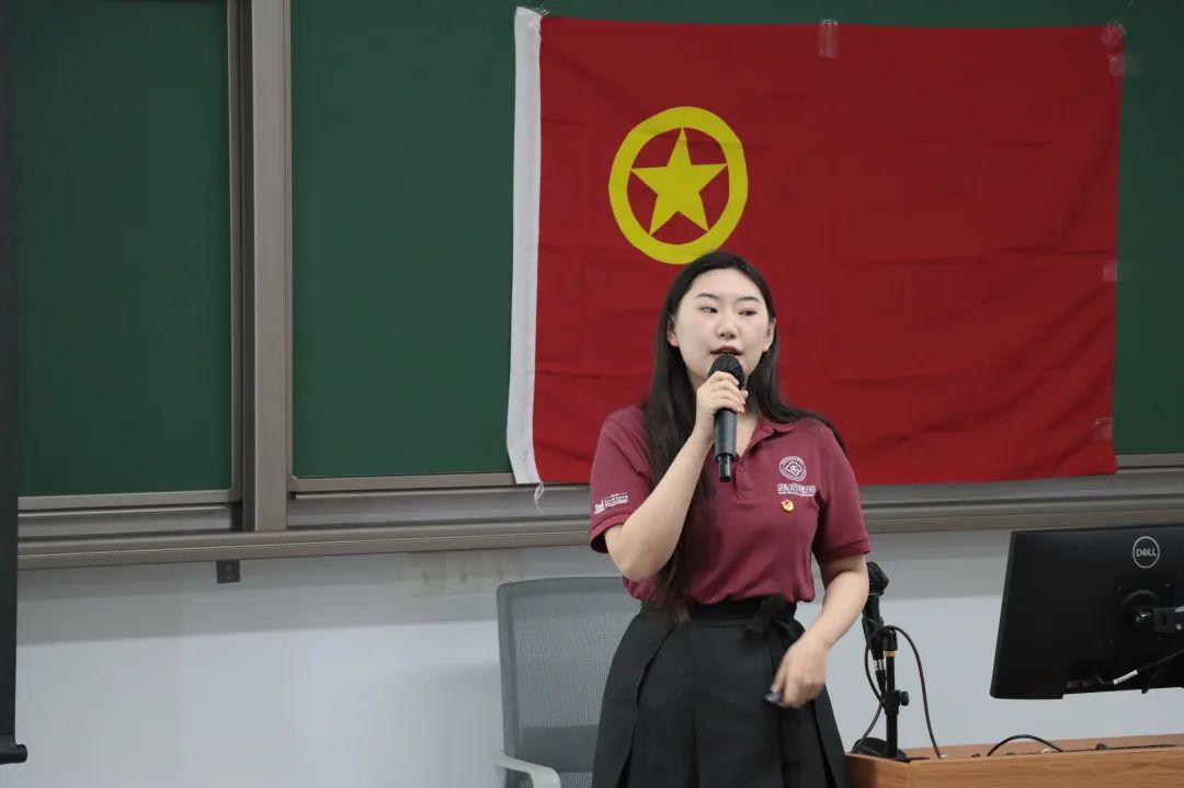 会议伊始,全体师生起立奏唱国歌和团歌。