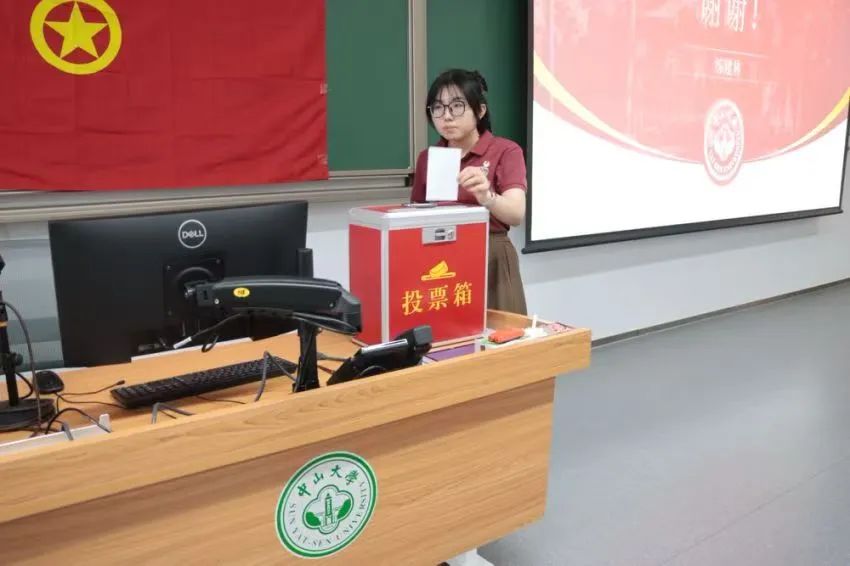 与会代表有序轮流上台投票,工作人员现场进行监票、计票工作。