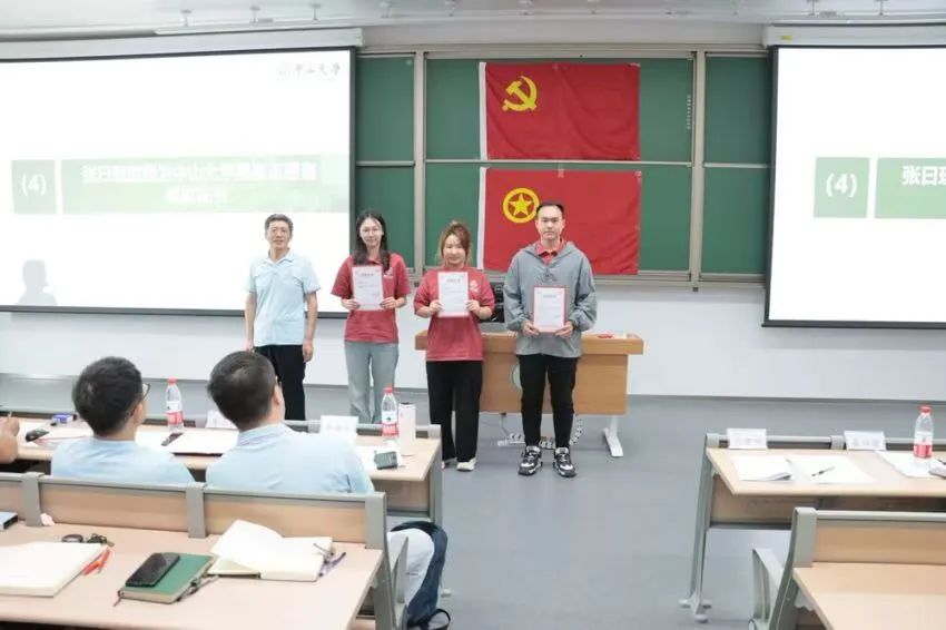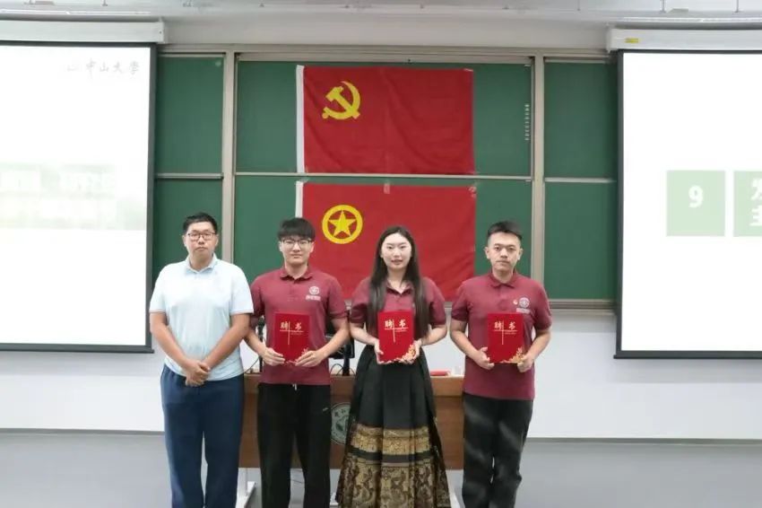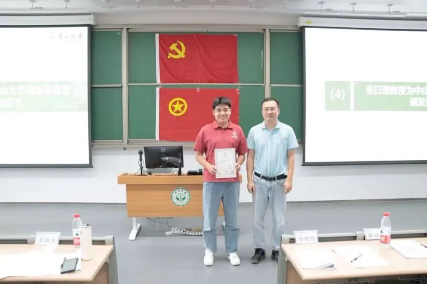 学院直属党支部副书记李锦华为中山大学优秀学生兼职辅导员颁发获奖证书。
