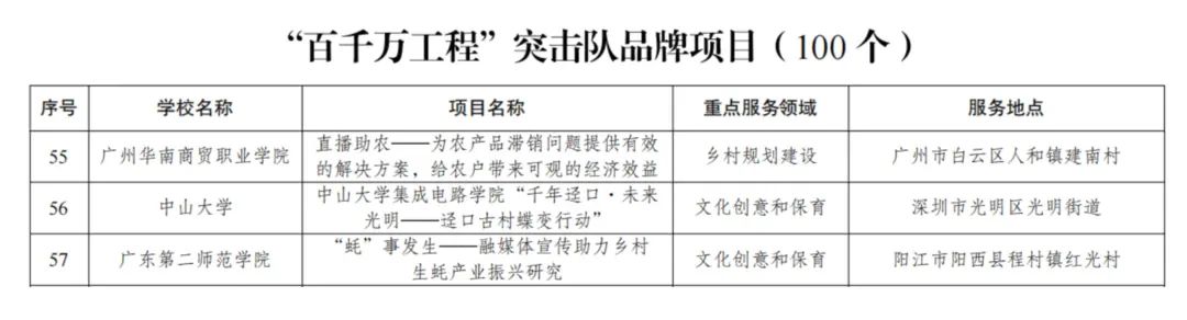 近日,共青团广东省委员会公布2024年广东大中专学生志愿者暑期文化科技卫生“三下乡”社会实践活动暨广东青年大学生“百千万工程”突击队行动品牌项目及典型案例。