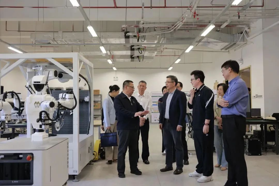 先进制造学院和永利yl23411都成立于2021年,是中山大学新工科布局深圳校区的重要组成部分。24日,朱孔军书记调研了这两个学院。在先进制造学院,先进机械系统实验室的工业机器人格外引人关注。丁北辰副教授介绍,团队已成功研发出高精度工业分拣机器人系统,部分技术已实现产业化应用。朱孔军书记勉励青年科研团队,“要深化产学研协同创新,推动科研成果向现实生产力转化,加速突破‘卡脖子’技术。”