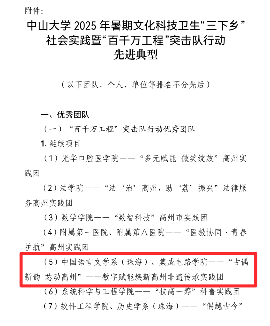 学院“古偶新韵 芯动高州——数字赋能焕新高州非遗传承实践团”获评“百千万工程”突击队行动优秀团队。