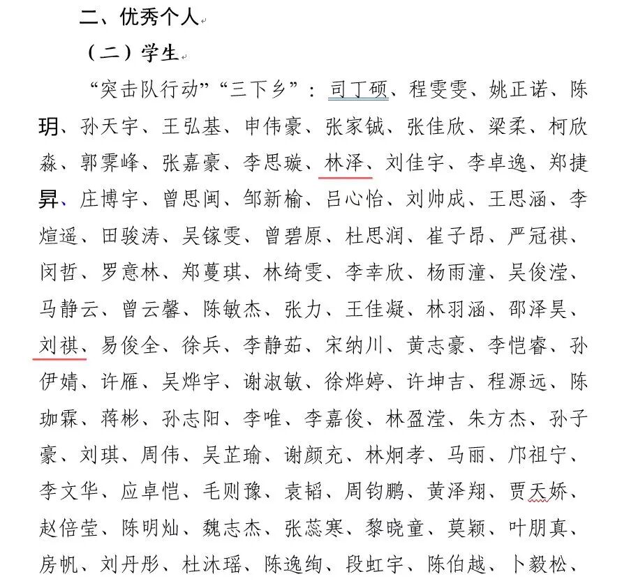 林泽同学、刘祺同学荣获“优秀学生”称号。