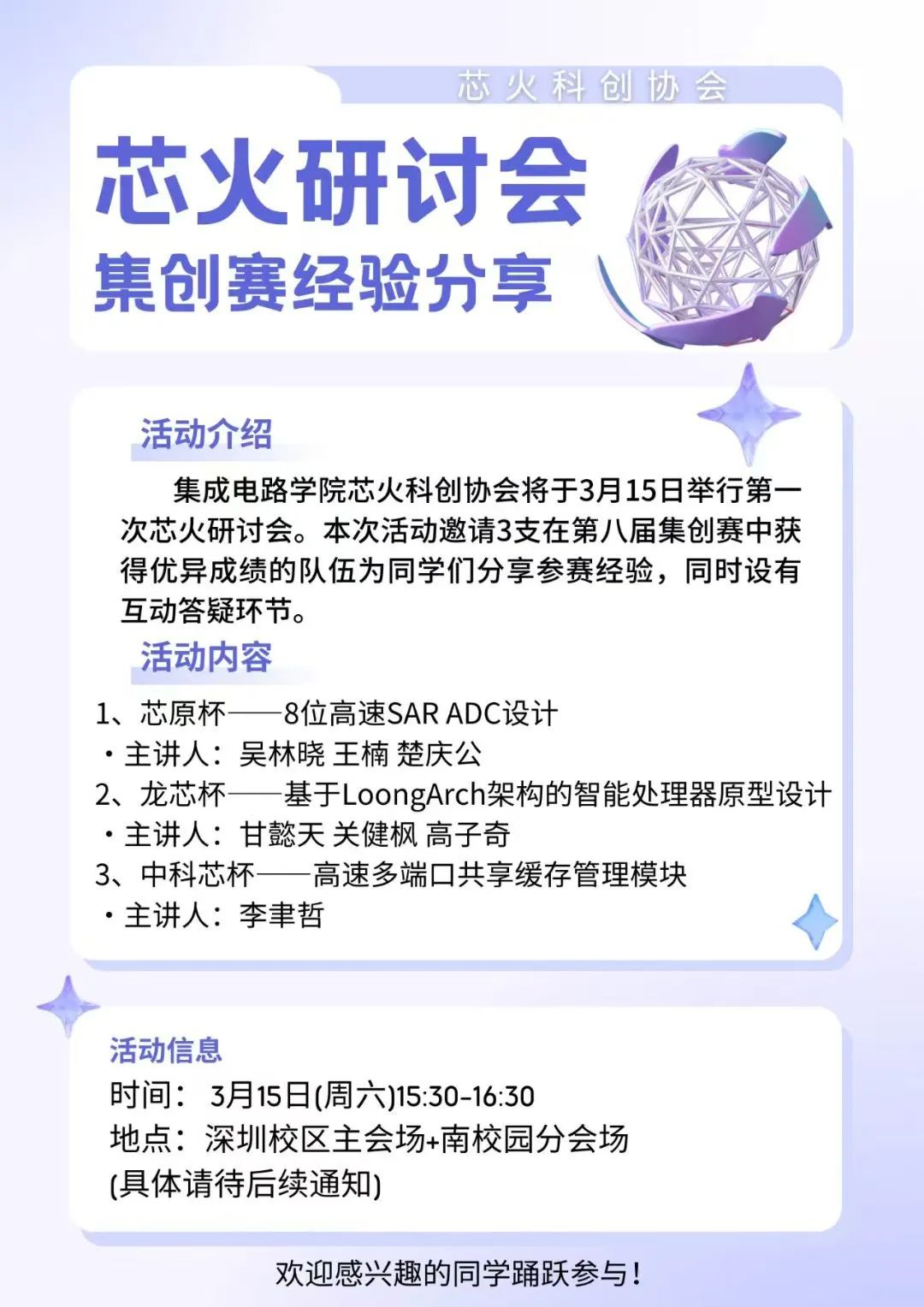 活动预告︱芯火研讨会——第八届集创赛经验分享