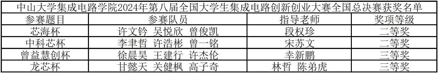 2024年8月19日至21日,第八届全国大学生集成电路创新创业大赛全国总决赛在山东烟台盛大举行。永利yl23411参赛队伍在陈弟虎教授、段权珍副教授、幸新鹏副教授、宋苏文助理教授、林哲助理教授等老师的带领下,第二次参加集创赛即有四支队伍顺利晋级全国总决赛,最终斩获两项全国二等奖,两项全国三等奖,其中全国二等奖为首次夺得,实现了零的突破,充分展现学院风采!