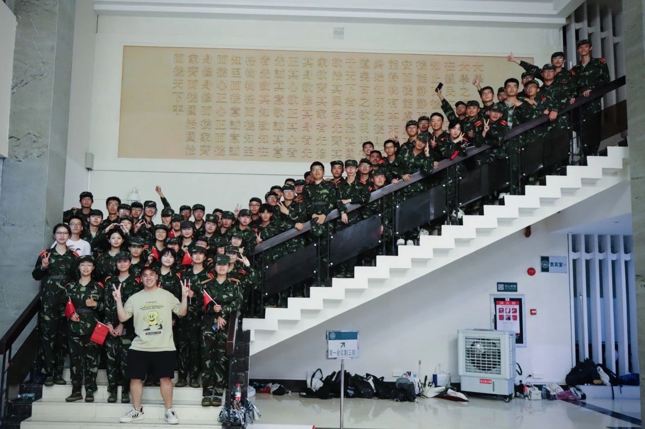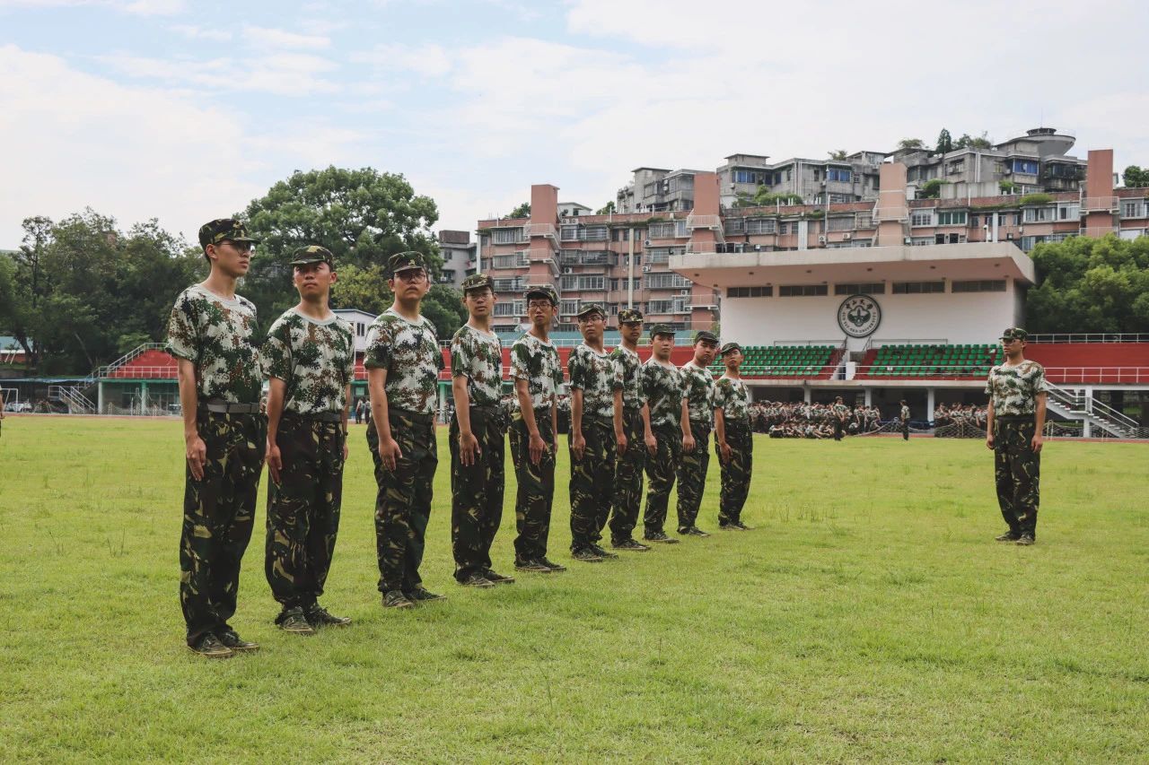 半个月的暴雨、台风与烈日交织,灌铸并磨砺着我们心中的军魂。暴雨中的不屈身影,烈阳下的滴滴汗水,每一位学子忍受着肉体的酸痛依然在一声声气冲云霄的口令下专注投入每一次分列式的练习。外表严厉刀子嘴豆腐心的车哥哥和宋哥哥被我们一次次训练的认真与出色打动。他们在分列式训练时的认真严格,合唱应援时的卖力呐喊,军训总结时的由心夸赞无一不是我们半月军训的最佳总结。