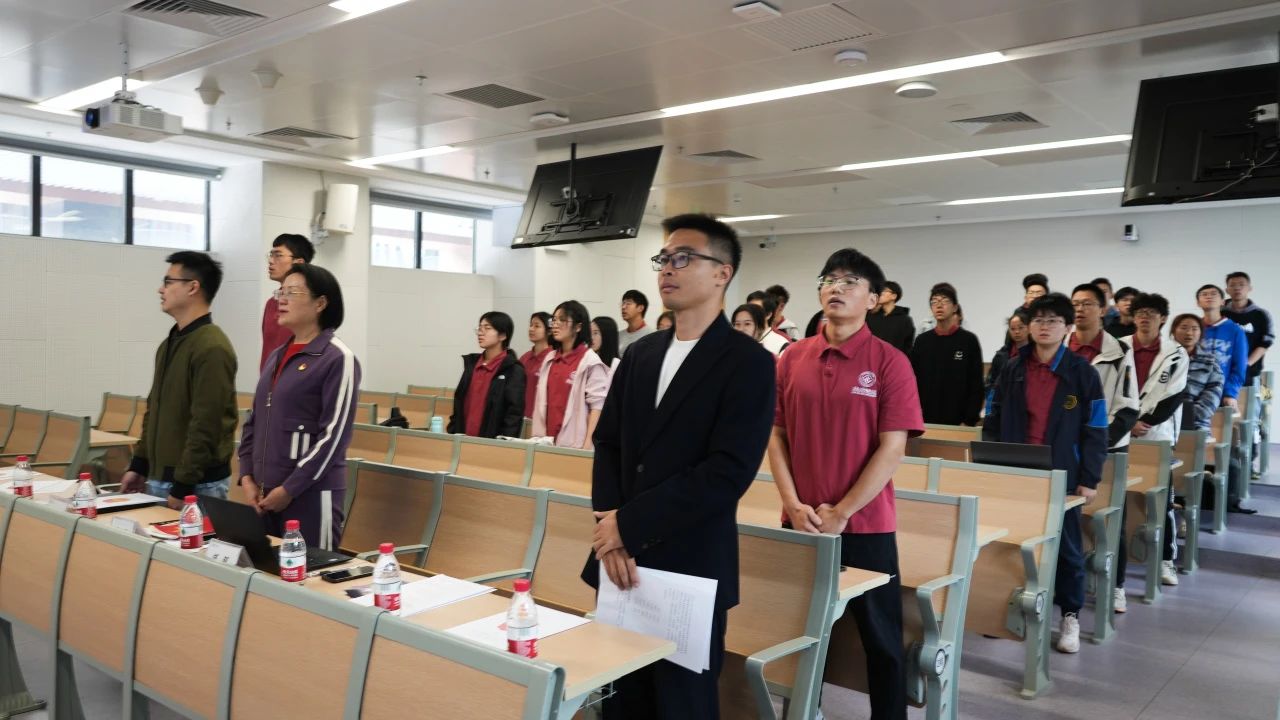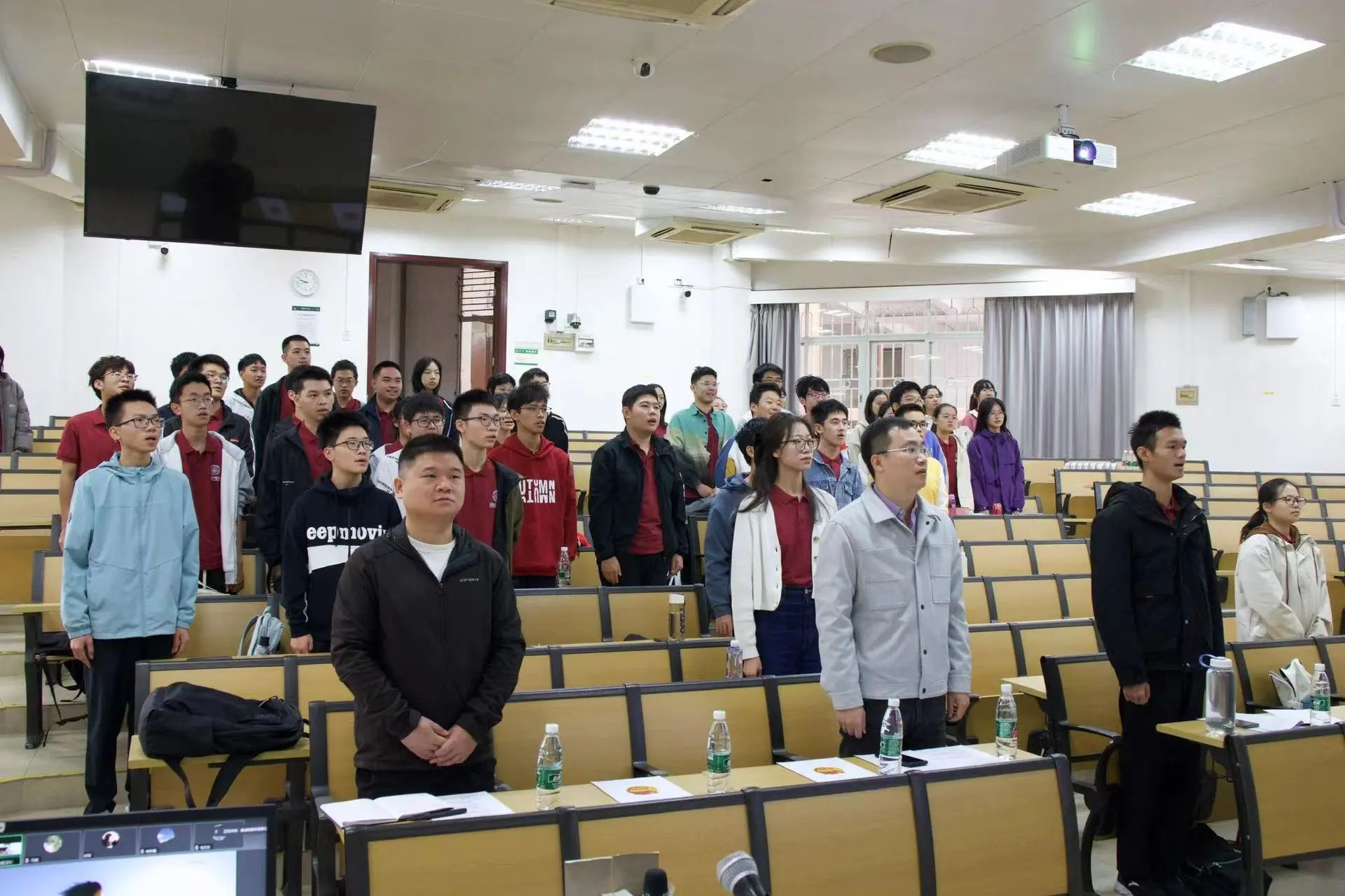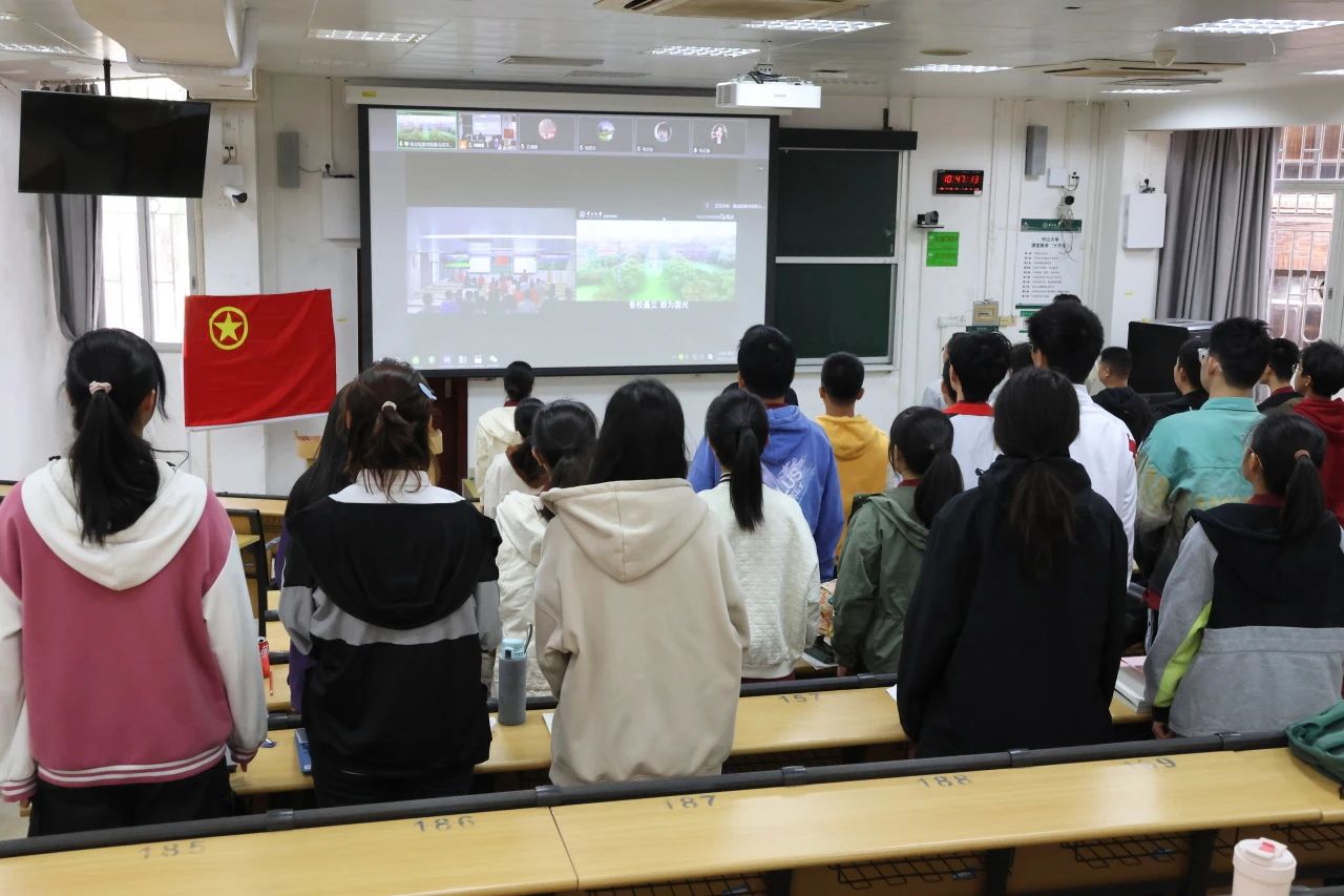 仪式伊始,全体师生起立奏唱中华人民共和国国歌和中国共青团团歌。