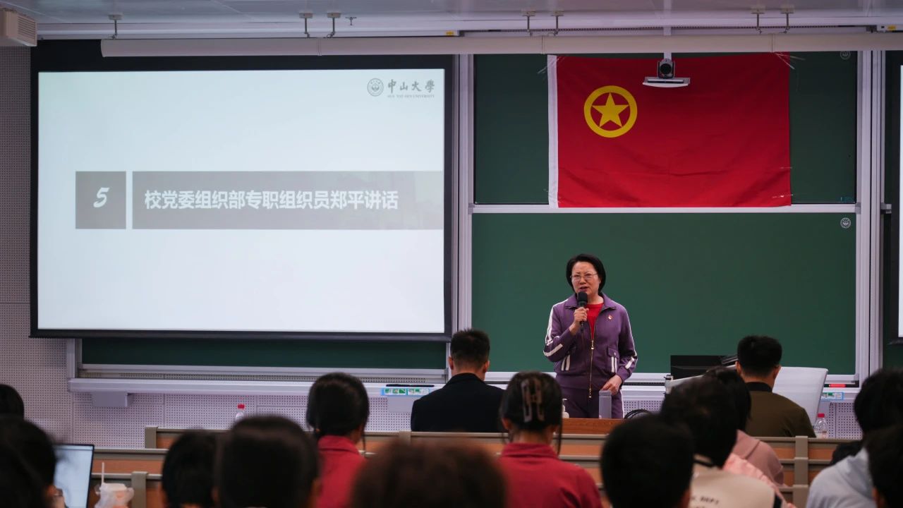 校党委组织部专职组织员郑平讲话。她感谢了辛勤付出的领导老师们,称赞了这次活动的立意和想法,鼓励了热情参与的同学们,并希望全体学员能够不断锻炼、提高自己,努力承担更大的责任,互相帮助、共同进步。