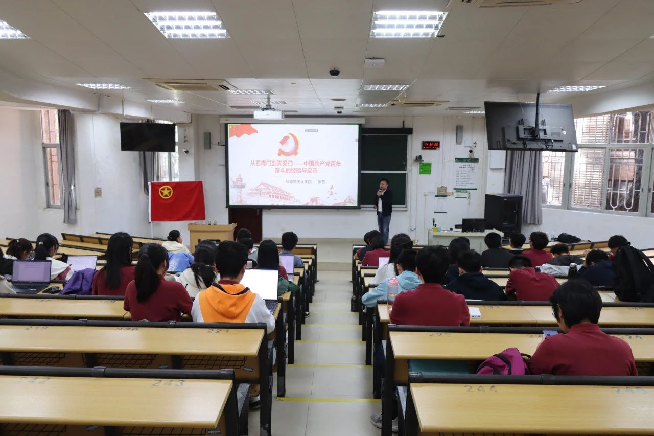 马克思主义学院张艺助理教授作思政专题讲座,该讲座同时也是作为学院“集电强芯”学习培训第5讲。张艺助理教授首先以中国共产党党史作为切入点,阐述了中国共产党的四个历史阶段的主要任务和成就。然后,他讲述了党对自身经验的总结,重点对党的第十九届六中全会的《决议》进行了解读。接下来,他就中华民族伟大复兴的新征程这一主题展开陈述,剖析了中华民族伟大复兴的含义,讲解了中国共产党为中华民族伟大复兴事业所做出的努力。最后,张艺助理教授希望同学们做有理想,敢担当,肯奋斗,能吃苦的青年。