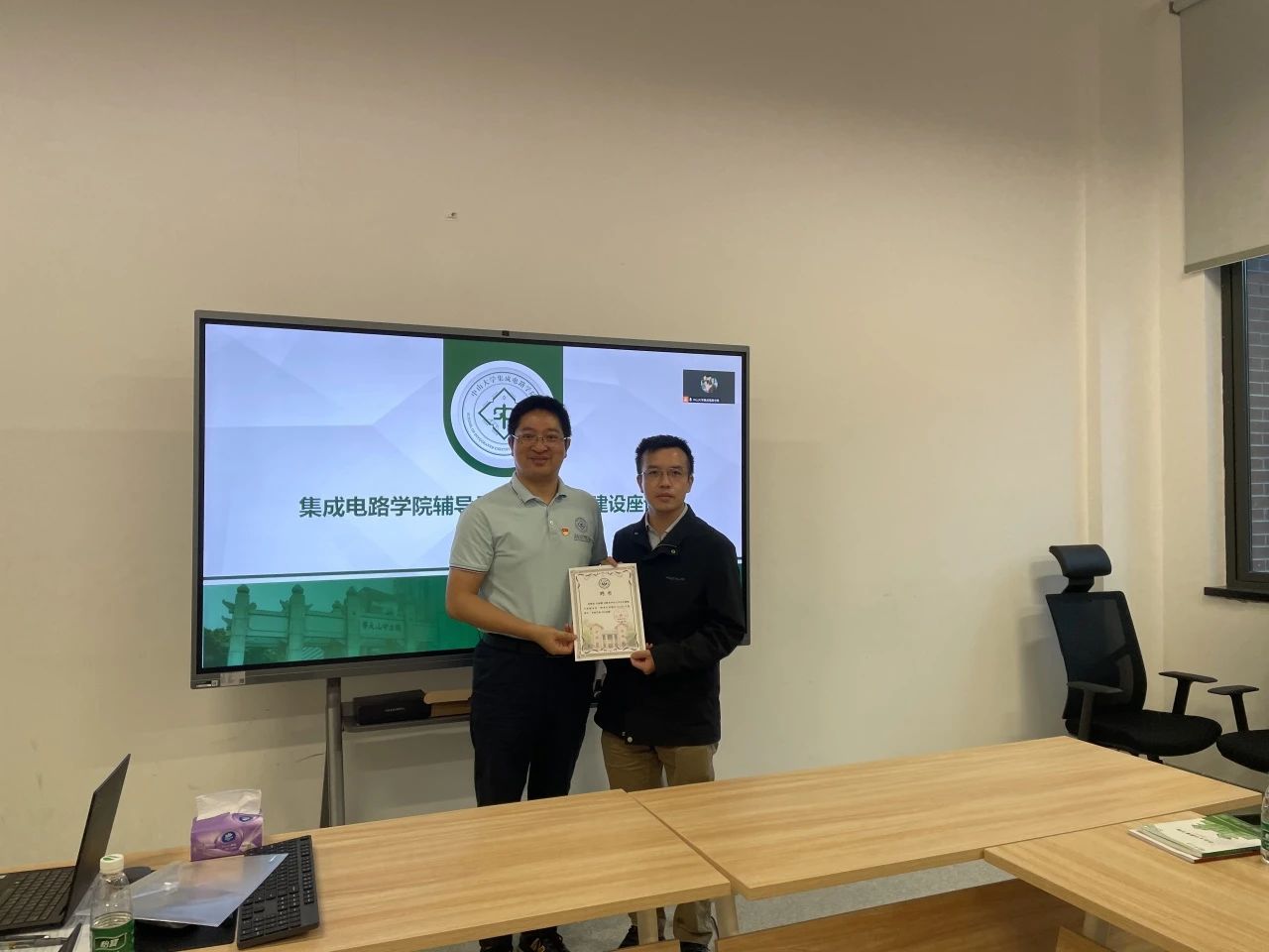 最后,张尚武书记作总结讲话。他对学院辅导员班主任队伍的建设表示充分的肯定:第一,各专任教师亲力亲为,有良好的工作思路、工作成果与奉献精神;第二,人力资源分配合理,班主任覆盖各个年级、芯片设计和制造工艺方向均有配齐。张书记鼓励学院学生工作队伍进一步完善工作机制,加强与学生的交流互动,继续将饱满的热情投入到学生工作中。