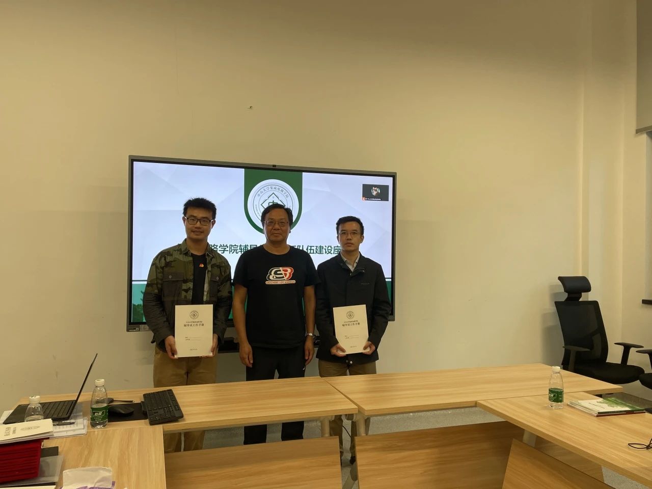 陈弟虎教授分别为学院青年教师专职辅导员和班主任颁发辅导员工作手册、班主任工作手册。