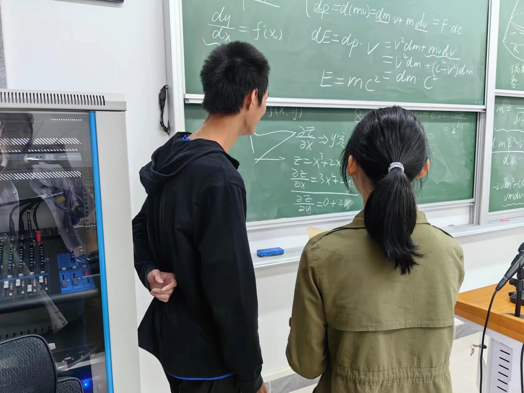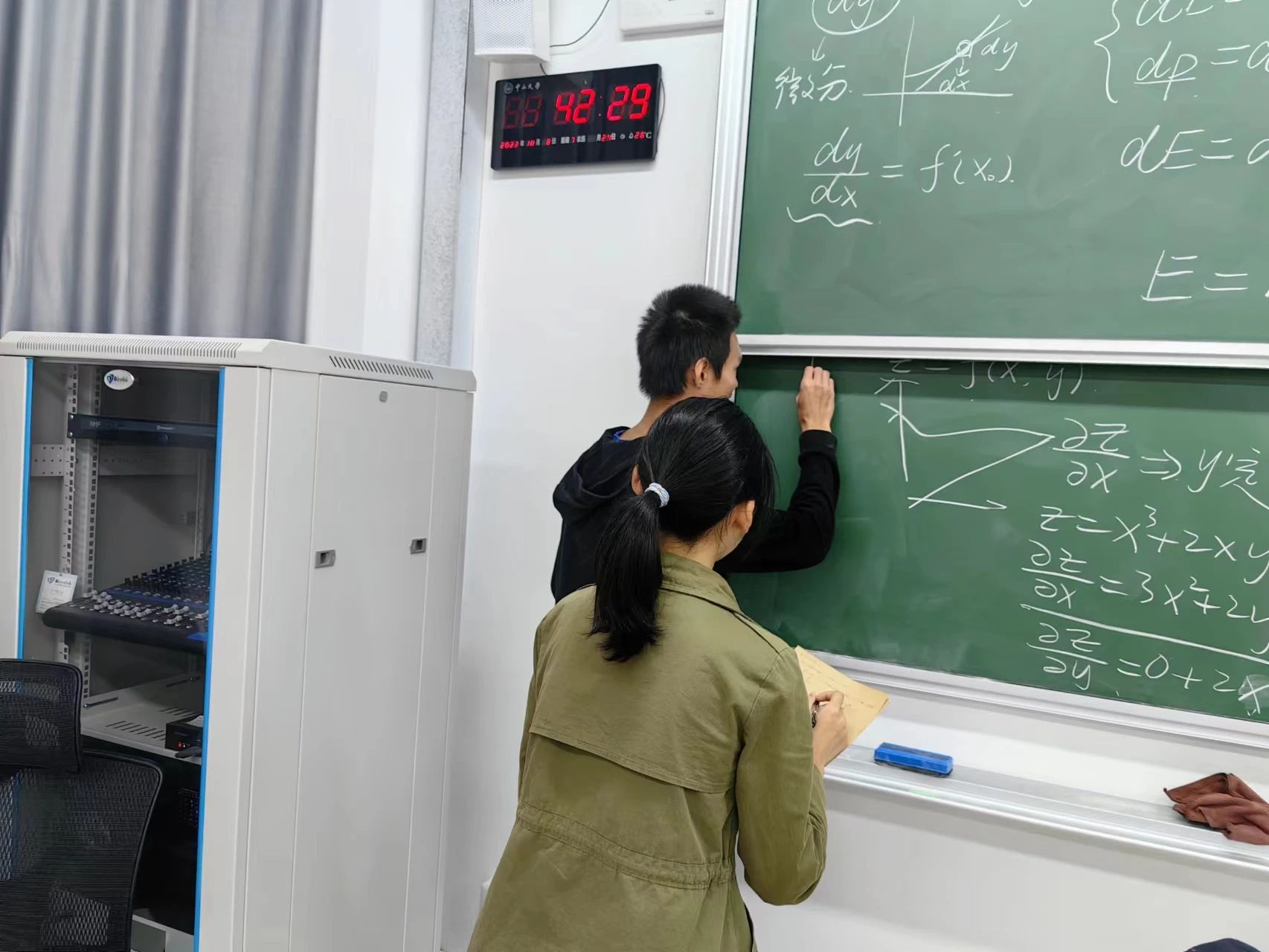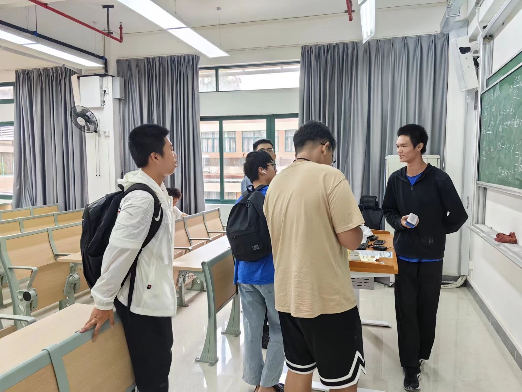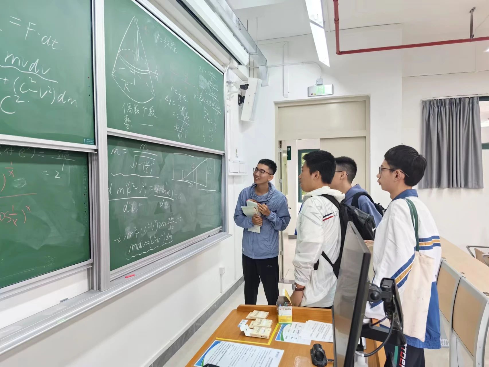 同学们自发地聚集在黑板前,针对一些疑难问题积极地进行讨论。
