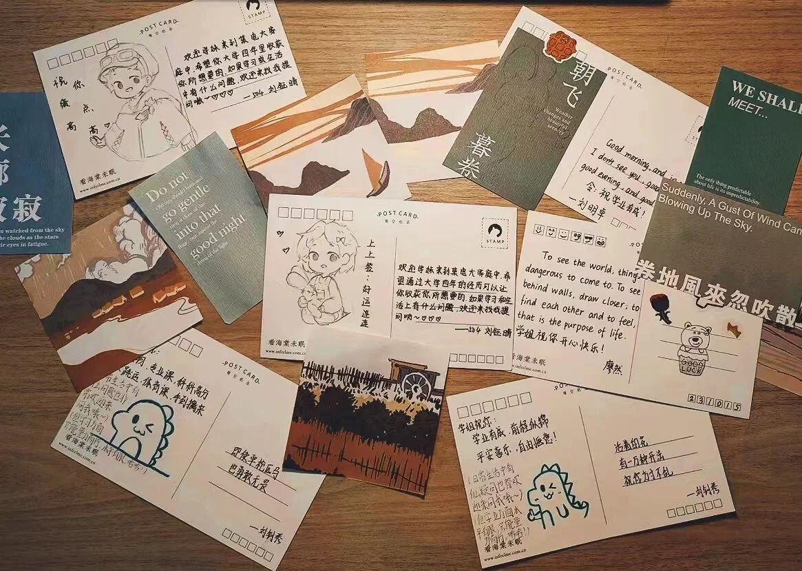 此外,2022级和2023级同学们还以信件、手账、明信片等形式互赠寄语,表达关切和祝福。