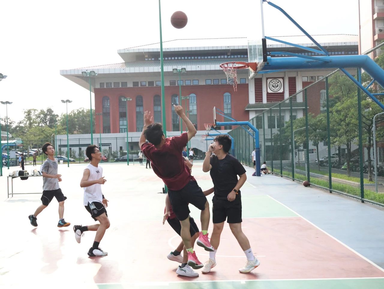 此次篮球赛共分为全场5v5、半场3v3、半场单挑赛三轮进行。