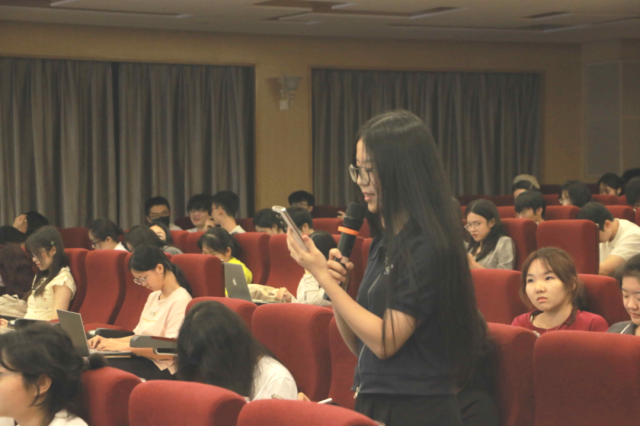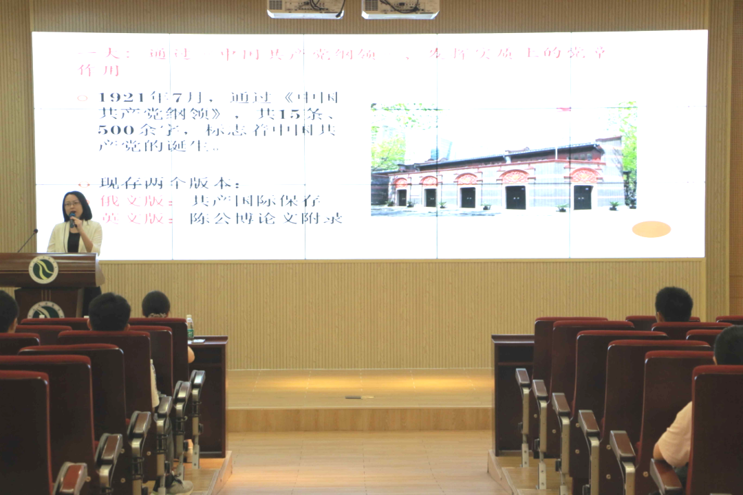 姜帆教授强调了《中国共产党章程》作为立党、治党、管党的总章程,事关党的奋斗目标的根本文献的重要性,以“《中国共产党章程》一共几个版本”等四个问题为引与参会同学密切互动,并通过这四个问题引领同学们深刻认识党章的发展历程。姜帆教授通过讲解中国共产党第一部独立自制的党章及其诞生的意义,在国外通过的六大党章通过地址的现况以及唯一一版没有通过全国党代会的党章诞生时的社会背景,带领大家重温了《中国共产党章程》发展至今的来龙去脉。姜帆教授从嘉兴南湖上党的纲领为始,通过生动的讲解和全面的资料展示解读各版党章的出台背景和内容特点,再现了百年党史的发展轨迹,重现了中国共产党百年的不忘初心和砥砺奋进,以图以史鉴今,贯通过去、现在与未来。在讲座的最后,姜帆教授鼓励大家明确方向,成为社会主义的接班人,为实现中华民族伟大复兴贡献自己的力量。在姜帆教授的精彩讲述结束后,掌声久久不能平息。