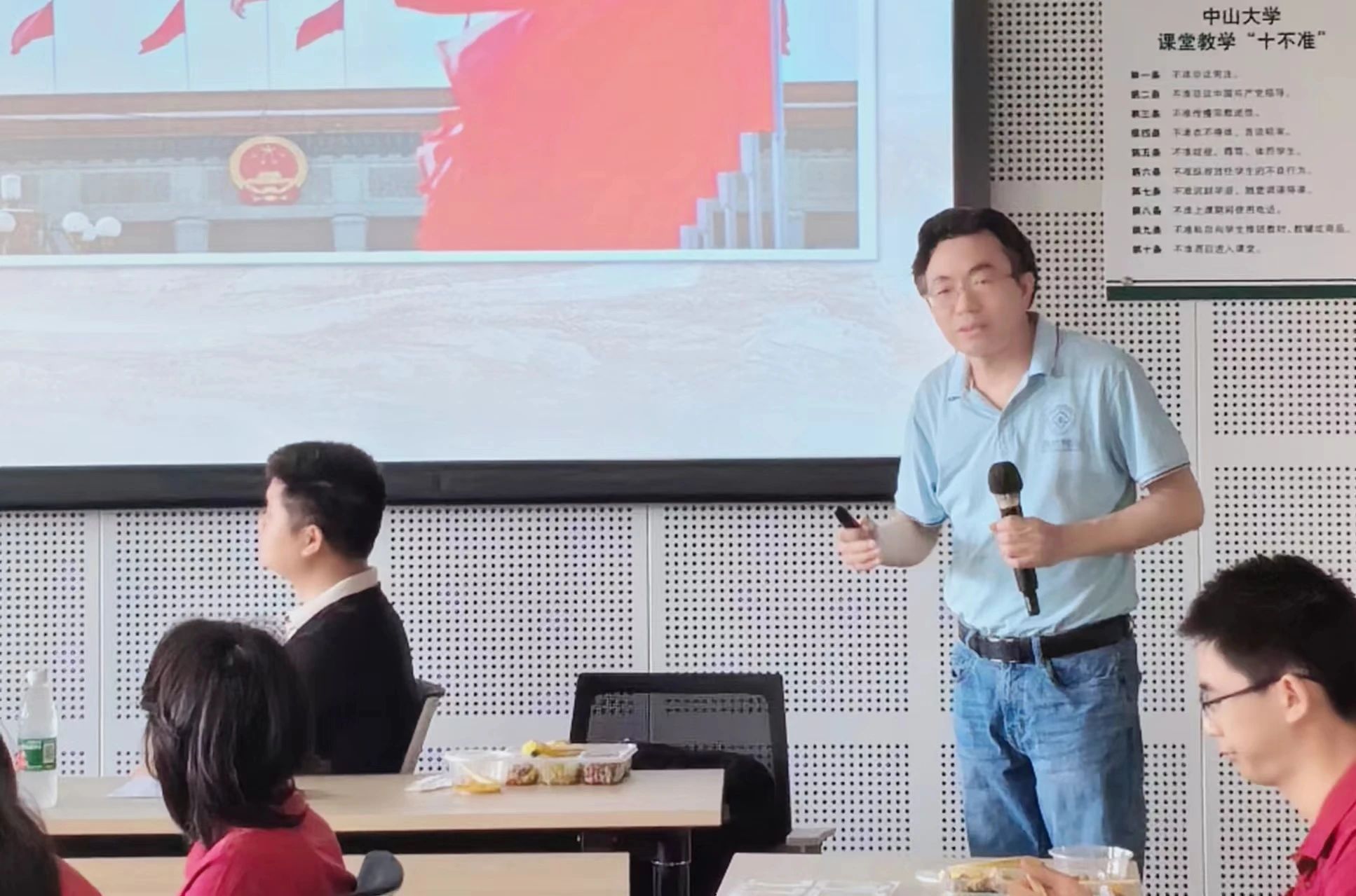 2024年3月30日,学院院长王中风教授、直属党支部书记张尚武于广州校区南校园逸夫楼503课室为2023级本科生讲授“思政第一课”。