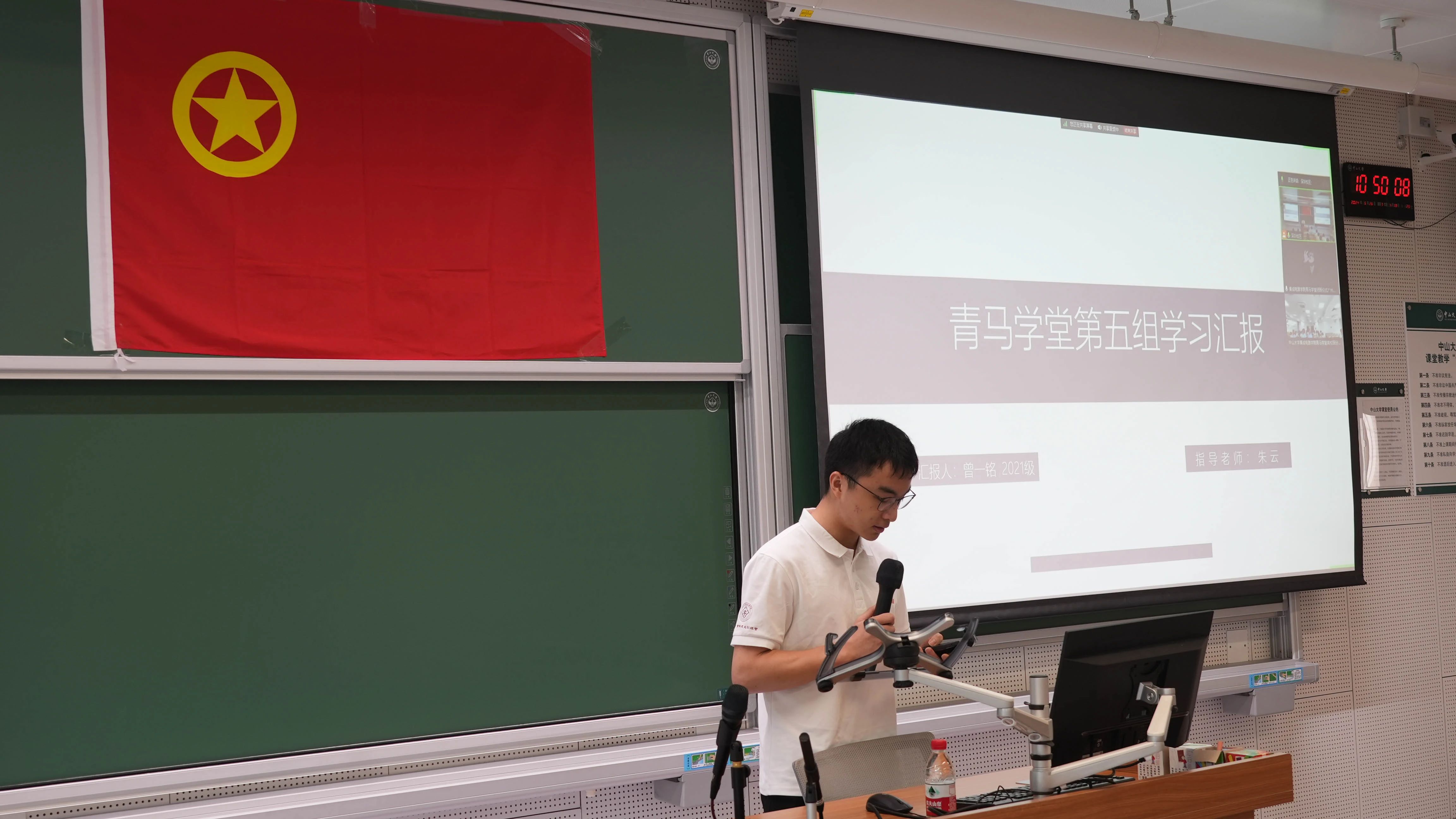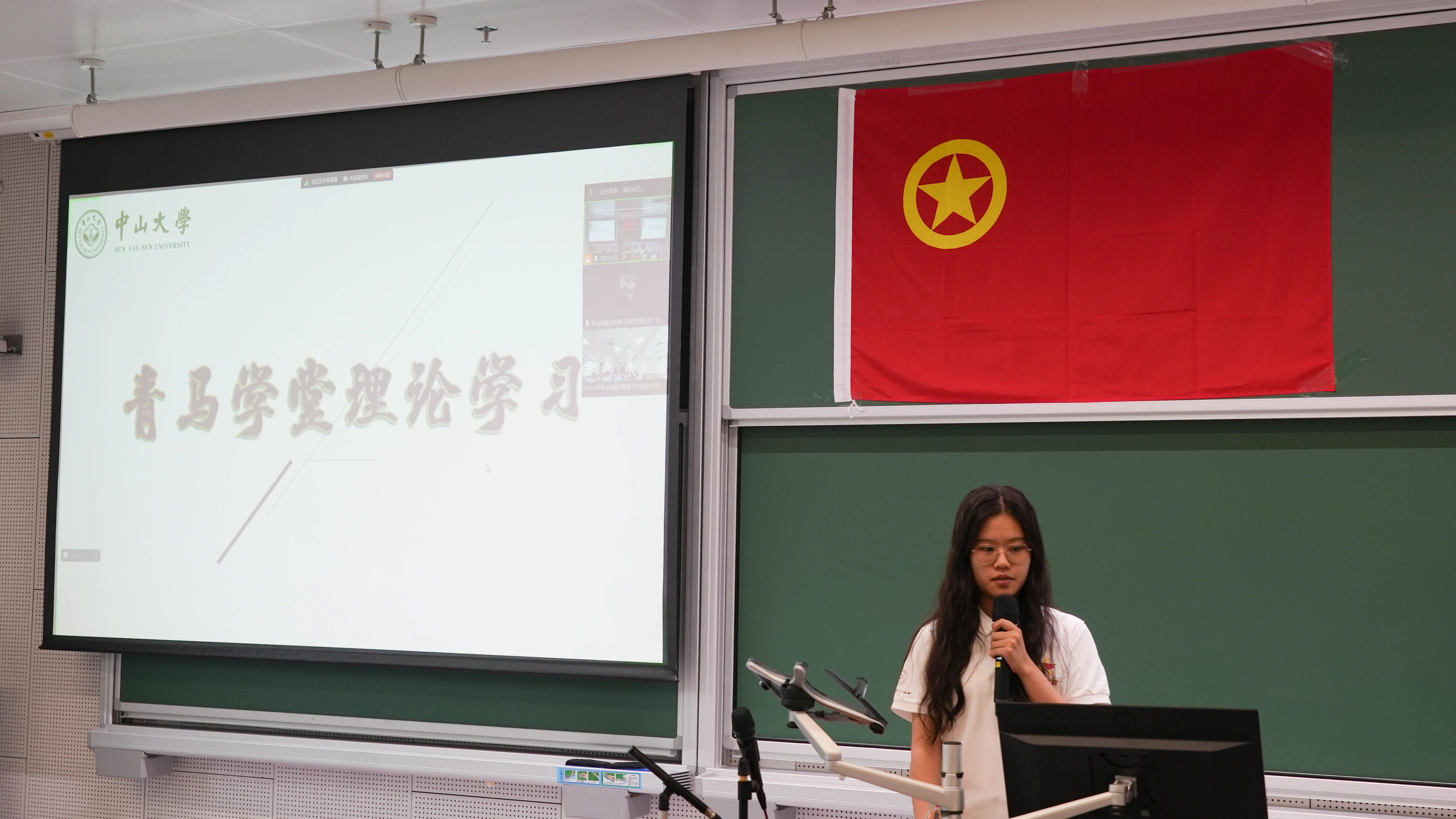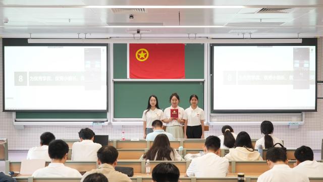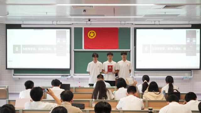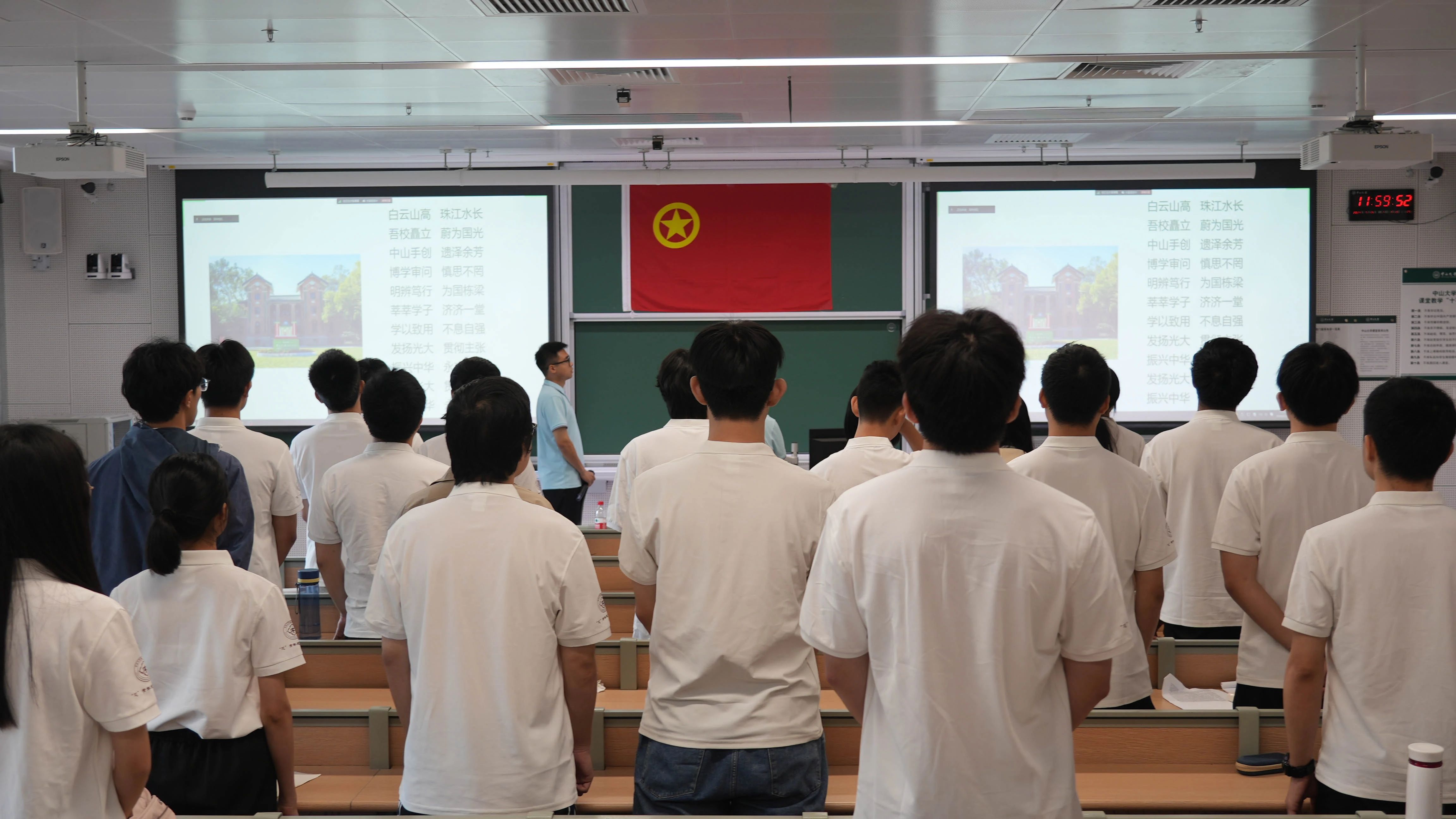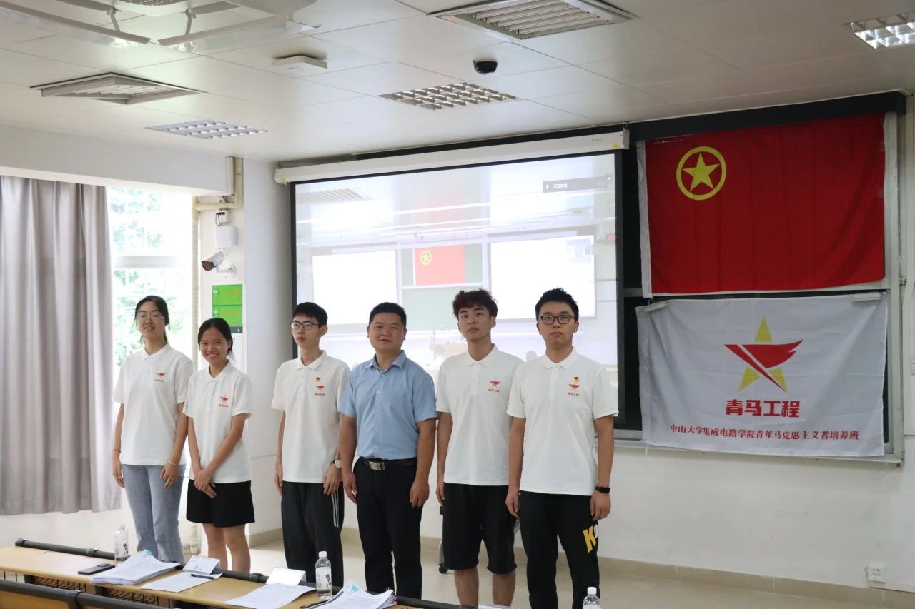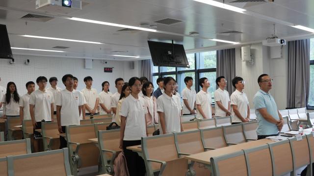 结班仪式伊始,全体师生起立奏唱中华人民共和国国歌和中国共青团团歌。