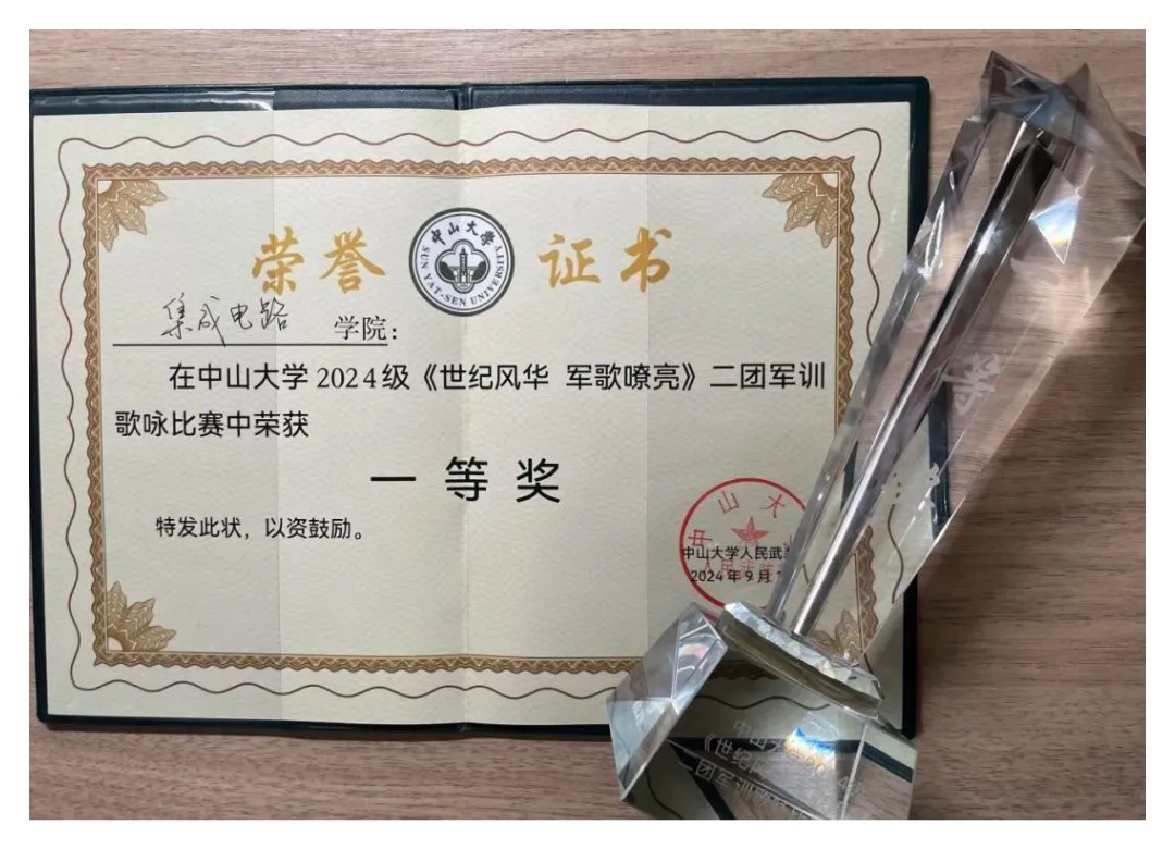 学子们心怀对祖国的赤诚热爱与对中山大学百年华诞的衷心祝福纵声歌唱。在全体师生的共同努力下,我院节目最终荣获“二团军训歌咏比赛一等奖”。愿我院学子再接再厉,在追求卓越的征程中永不言弃!