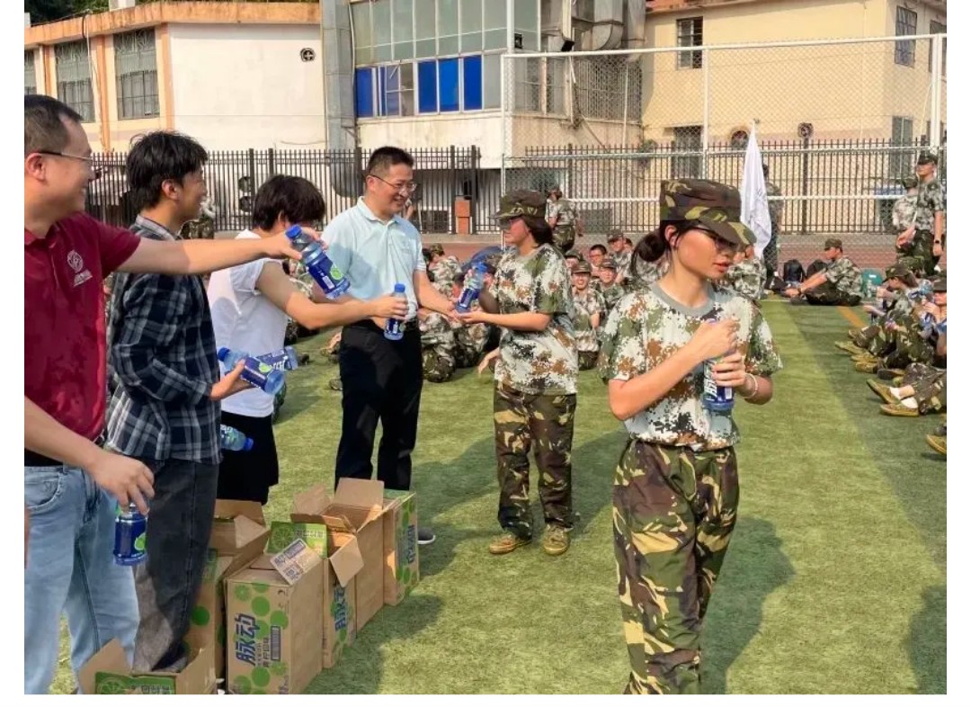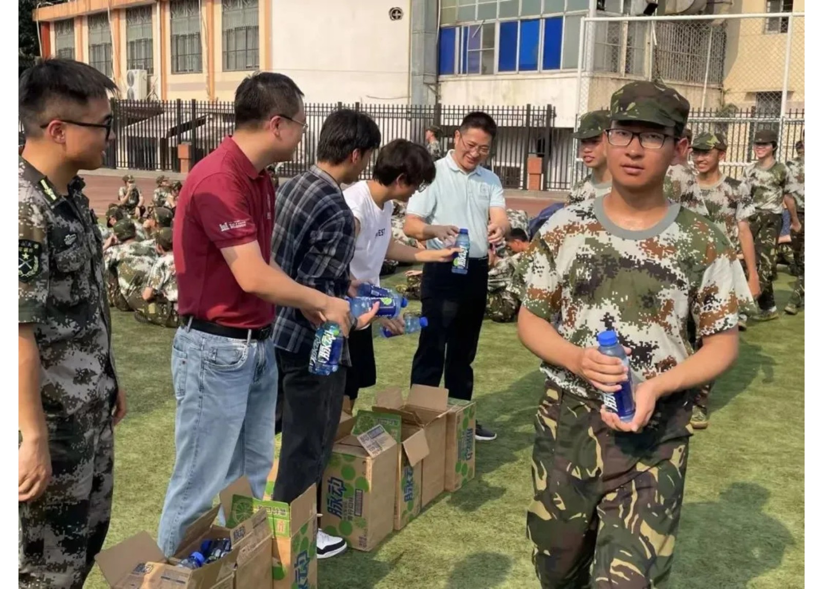 烈日当空,暑热未消。学院直属党支部书记张尚武、副书记李锦华和辅导员何琛在炎炎夏日中为同学们送来阵阵“清凉”。冰凉的饮料蕴含着学院对新生们的殷切关怀,更增强了集电大家庭的凝聚力。同学们备受鼓舞,再次以昂扬的姿态投入训练。