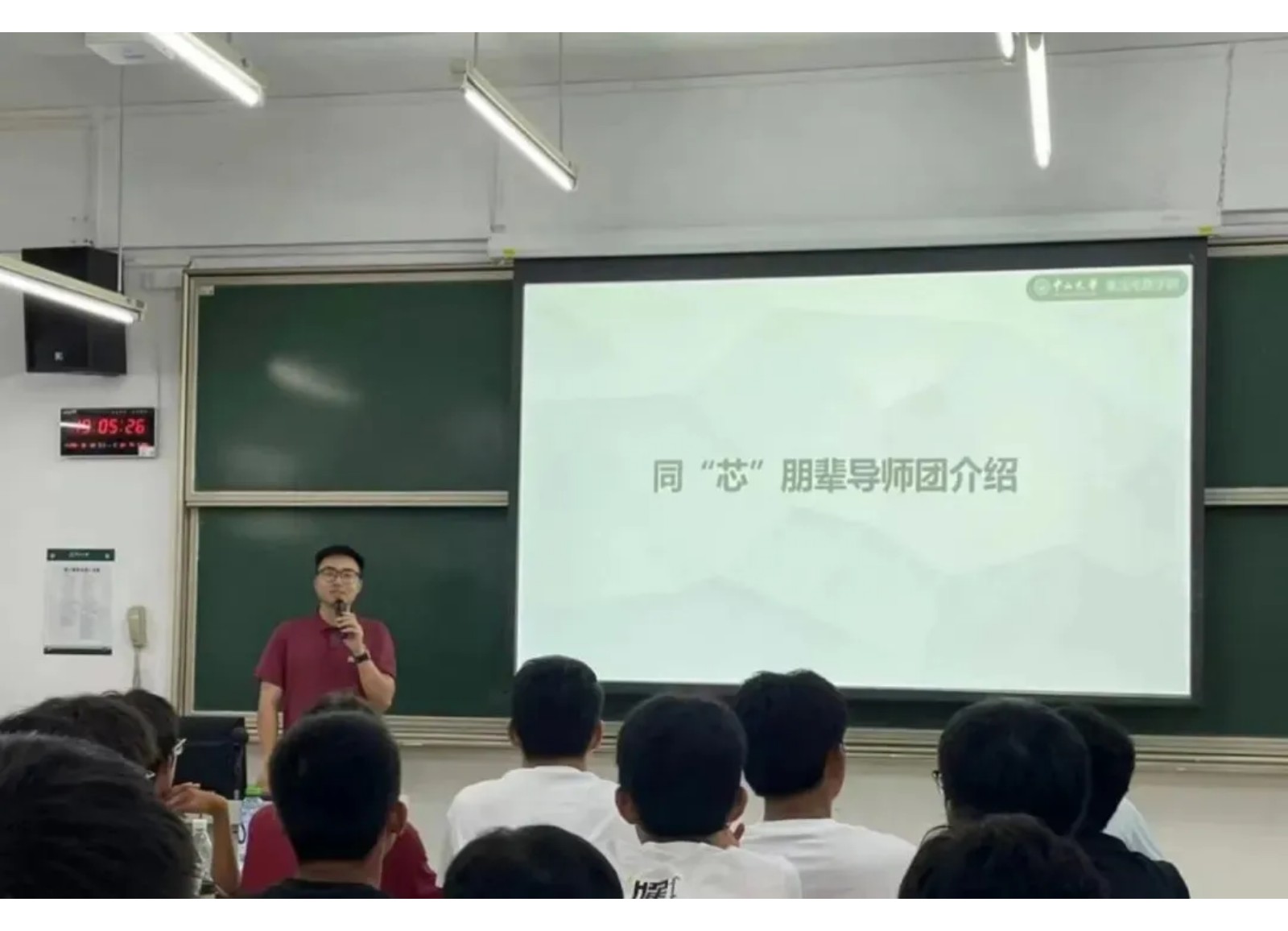 何琛老师为同学们介绍学院同“芯”朋辈导师团。导师团的师兄师姐们将为同学们提供班对班、点对点的指导,帮助同学们尽快适应大学生活,融入集电大家庭之中。