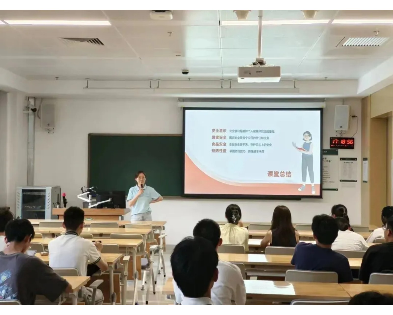 首先, 段权珍副教授和牟运助理教授为同学们讲授安全教育第一课。两位老师围绕国家安全、消防安全、诈骗预防、毒品识别与拒绝,以及心理健康这五大板块,结合近期安全事件新闻案例,深入浅出地进行了阐述。两位老师着重强调了筑牢安全意识与自我保护能力的重要性,鼓励大家将安全防范工作做在前面,做到未雨绸缪。