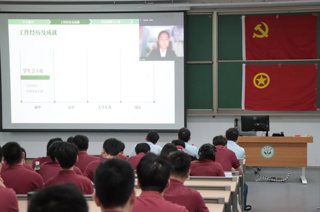 新一届学生会主席团候选人龙孝俣、刘艺馨、淦丽萍、项铮、庞毓霏分别作竞选演讲。
