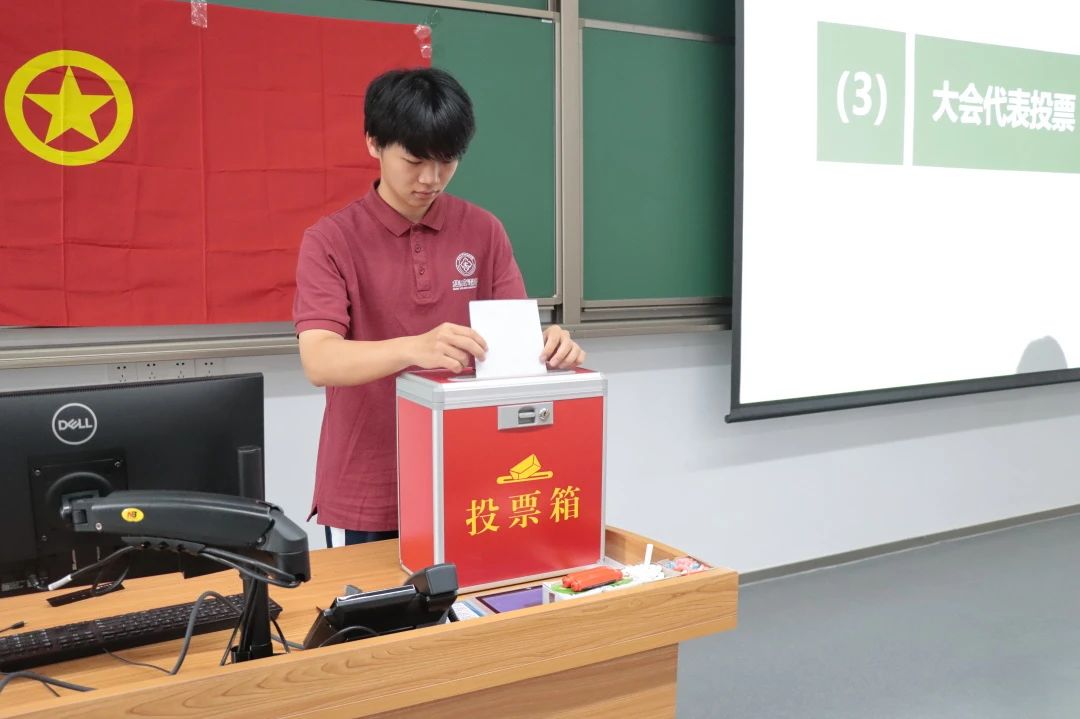 团委书记何琛老师宣布选举结果。经全体学生代表无记名投票差额选举,本次会议产生了学院第四届学生会主席团成员。