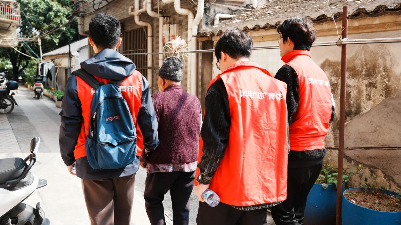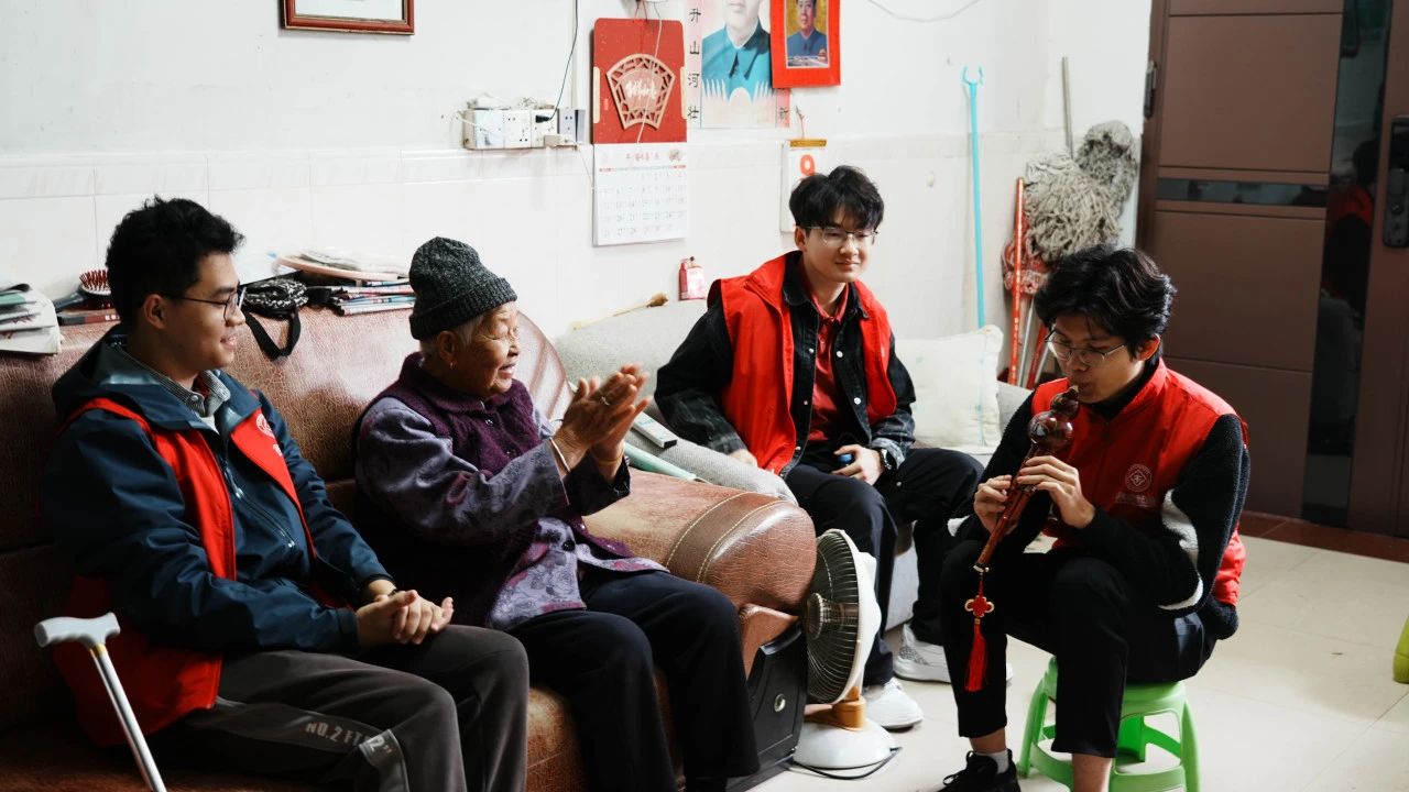 集电“芯”青年们和社区工作人员一起,带着沉甸甸的关怀走进社区。志愿者们化身“银龄使者”,为老人们带去米面粮油等生活物资,更带着"会说话的温暖"——操着地道粤语的青年们围坐老人身旁,听他们细数旧时月光,聊家长里短。志愿者用葫芦丝吹奏《荷塘月色》,悠扬旋律在斑驳墙面上流淌。当90岁高龄的独居婆婆颤巍巍握住志愿者的手,说"后生仔有心了",湿润的眼角映照着三月最温暖的雷锋之光。