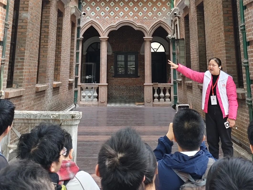 活动伊始,师生们在讲解员的带领下参观柏园外景。讲解员为师生们详细介绍了柏园的建筑风格与历史背景,并解读其作为历史文化遗产的重要意义。