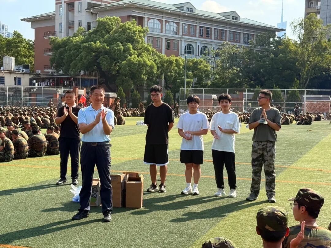 学院党委书记张尚武、2025级本科2班班主任姚清河教授、马克思主义学院青年教师专职辅导员朱云助理教授及辅导员何琛,先后两次为训练同学们送上清凉饮料。一句句叮嘱传递关怀,一份份清凉驱散暑热,让同学们在严苛的训练中感受到了学院大家庭的温暖。