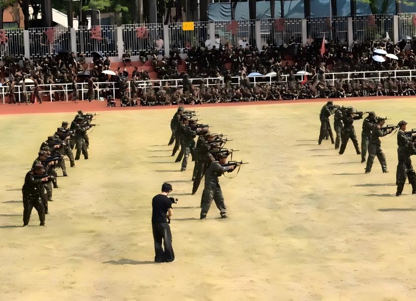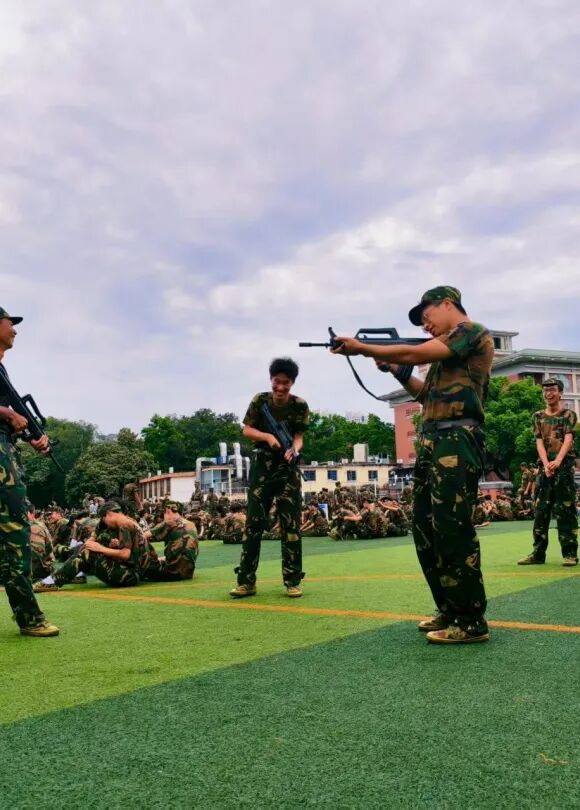 军训场上,集电学子身着迷彩开展射击训练,他们专注凝神、姿态稳扎,在教官指导下反复打磨动作细节。他们如设计芯片般把“精准”与“坚定”刻进迷彩青春,践行“精益求精”的专业态度。