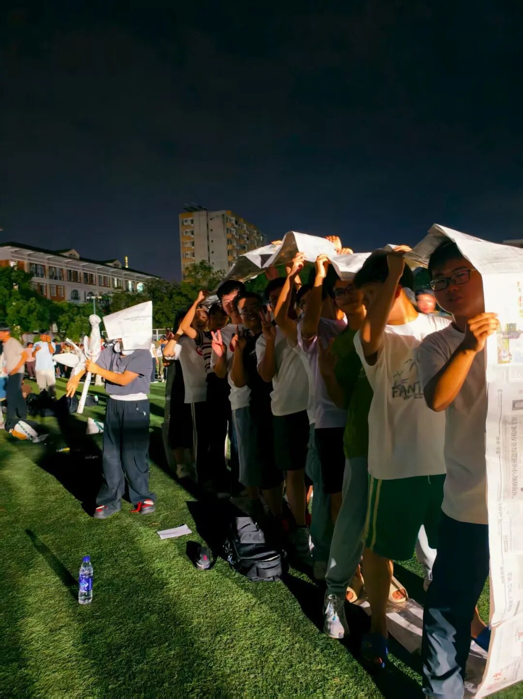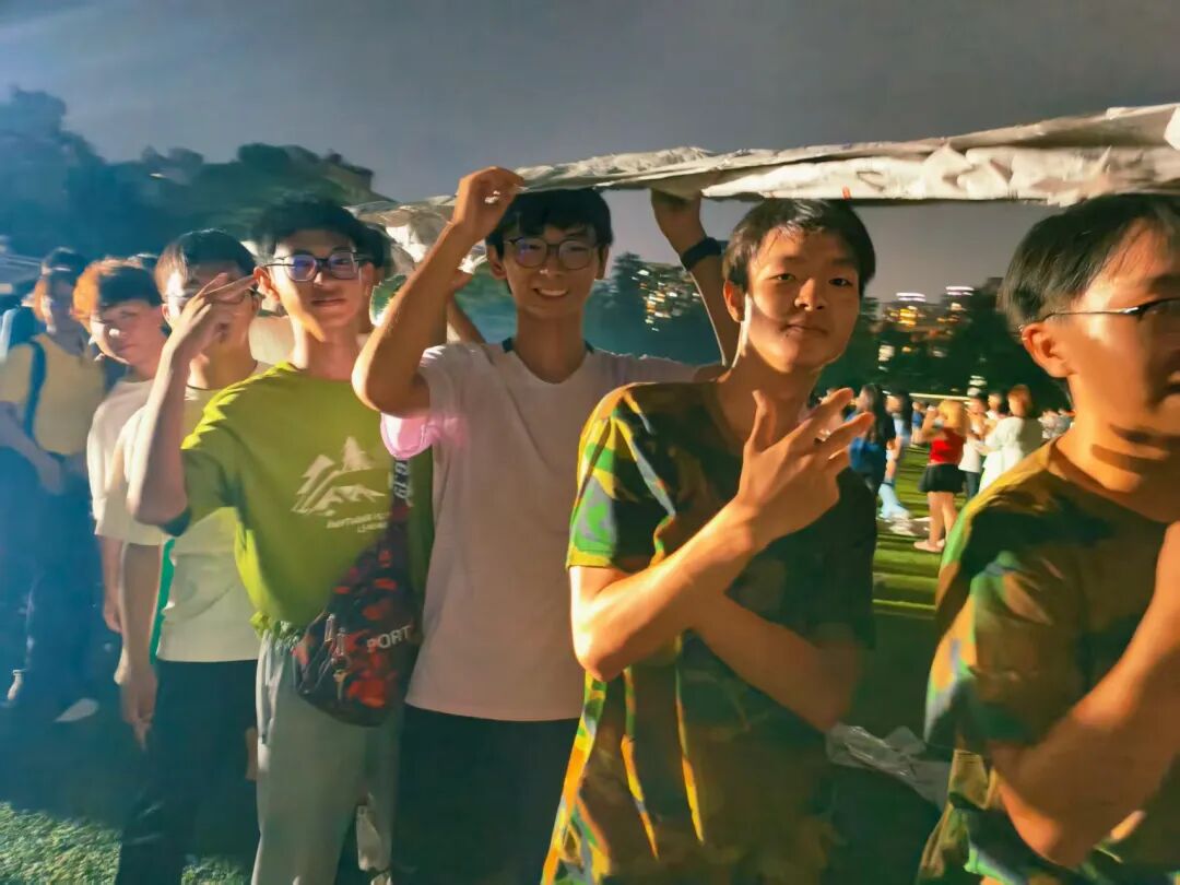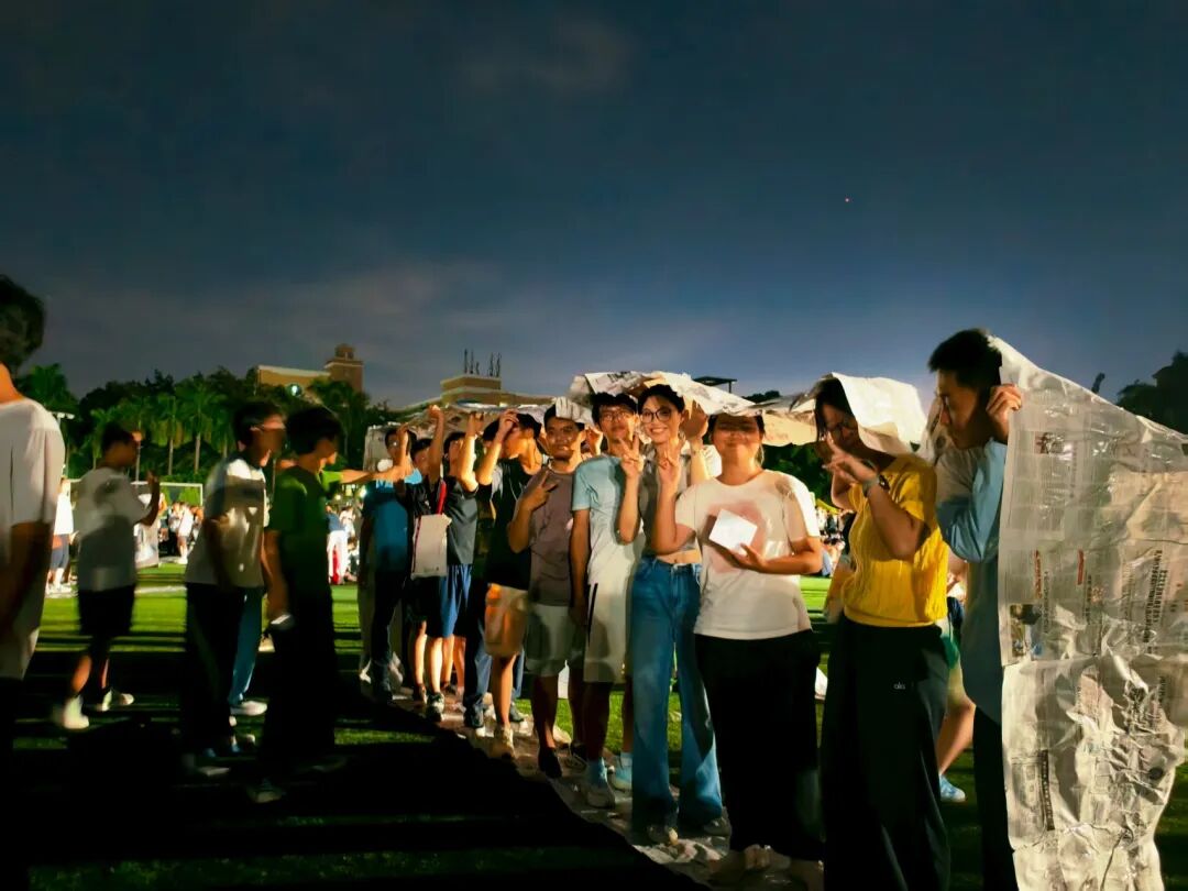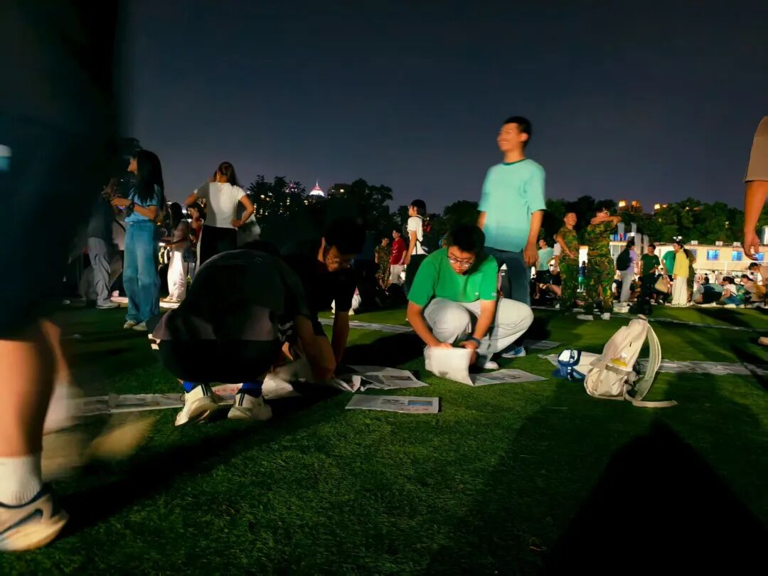 军训夜晚,同学们以手机微光织就“灯光秀”,为破冰仪式添温馨底色;通过“寻友签名”寻“同频”伙伴;在“生命之轮”环节,众人组队模拟坦克行进,手拉手默契配合。这场破冰活动让新生真诚相遇,微光不仅点亮训练场,更拉近彼此心。