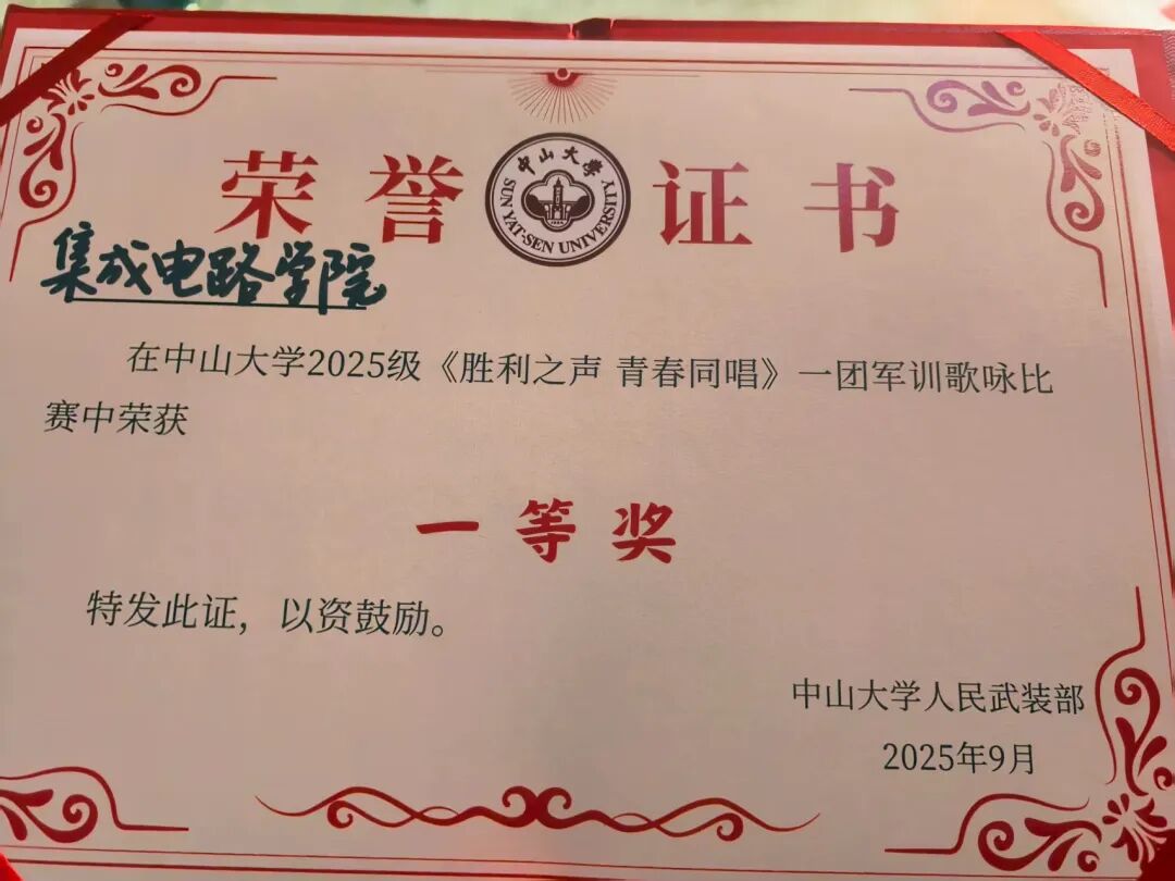 经过日夜排练和并肩协作,在《胜利之声,青春同唱》军歌大赛中,集电学子身着迷彩,演唱《当那一天来临》,凭借饱满精神、整齐节奏与热忱演唱,学院斩获二团军训歌咏比赛一等奖