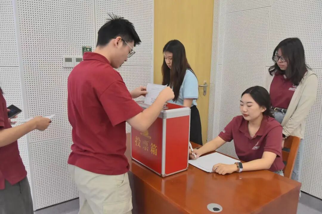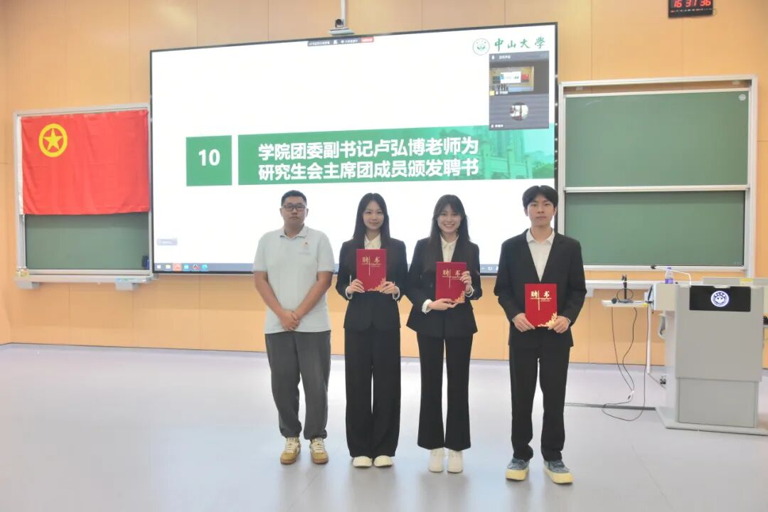 经全体研究生代表无记名投票差额选举,本次会议产生了学院第二届研究生会主席团成员,卢弘博宣布选举结果并为新一届研究生会主席团成员颁发聘书。
