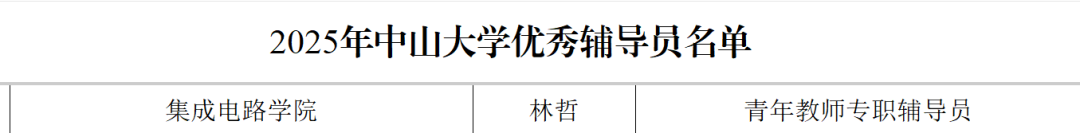 获评2025年中山大学优秀辅导员