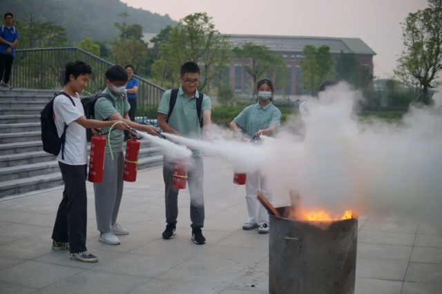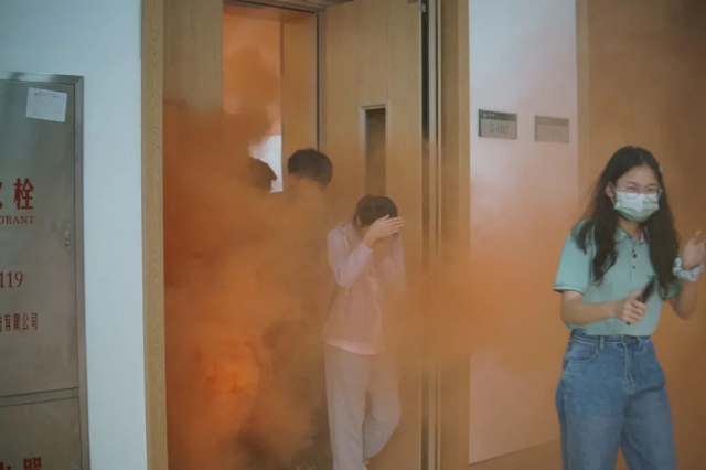 最后,通过模拟火灾烟雾下的疏散体验与灭火器实操演练,老师和同学们在实际操作中训练了相关技能。