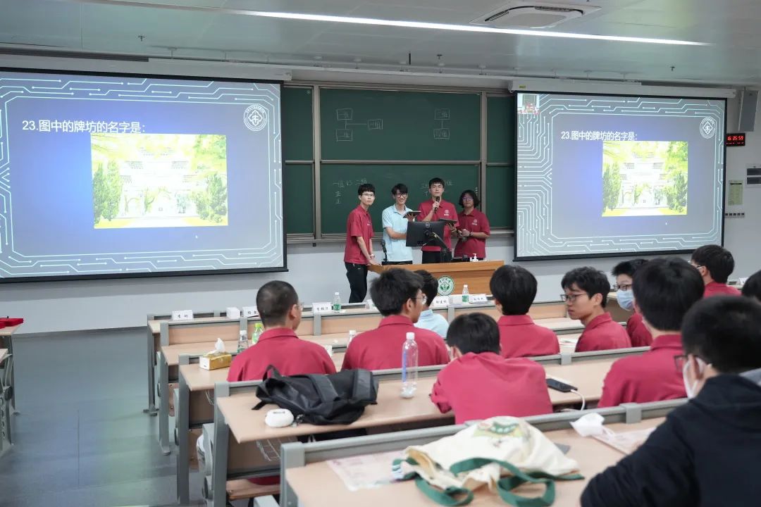 主持人首先介绍了知识竞赛的规则:现场同学按照座位分为四组进行比赛。第一轮比赛由第一组对阵第二组,第三组对阵第四组,胜者进入下一轮。在主持人念完题目并喊出答题开始后,双方同学即可举手抢答。两轮对阵后,最终胜出的小组即为冠军。